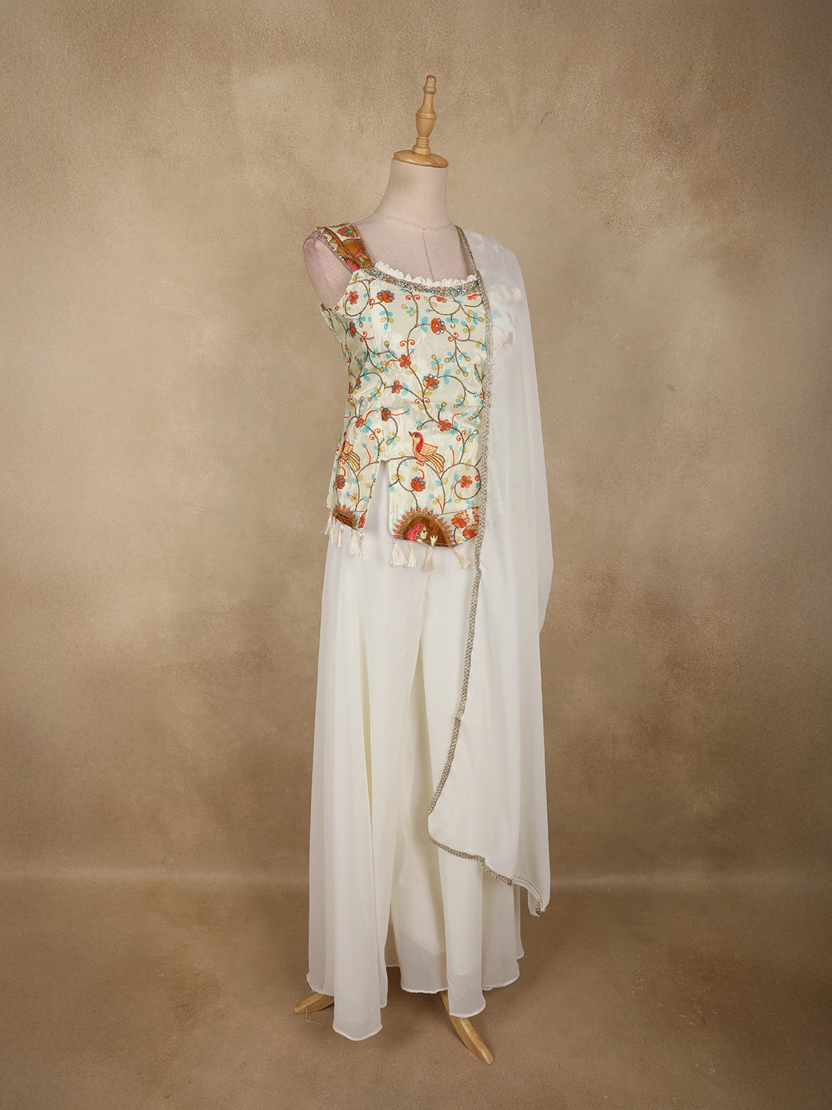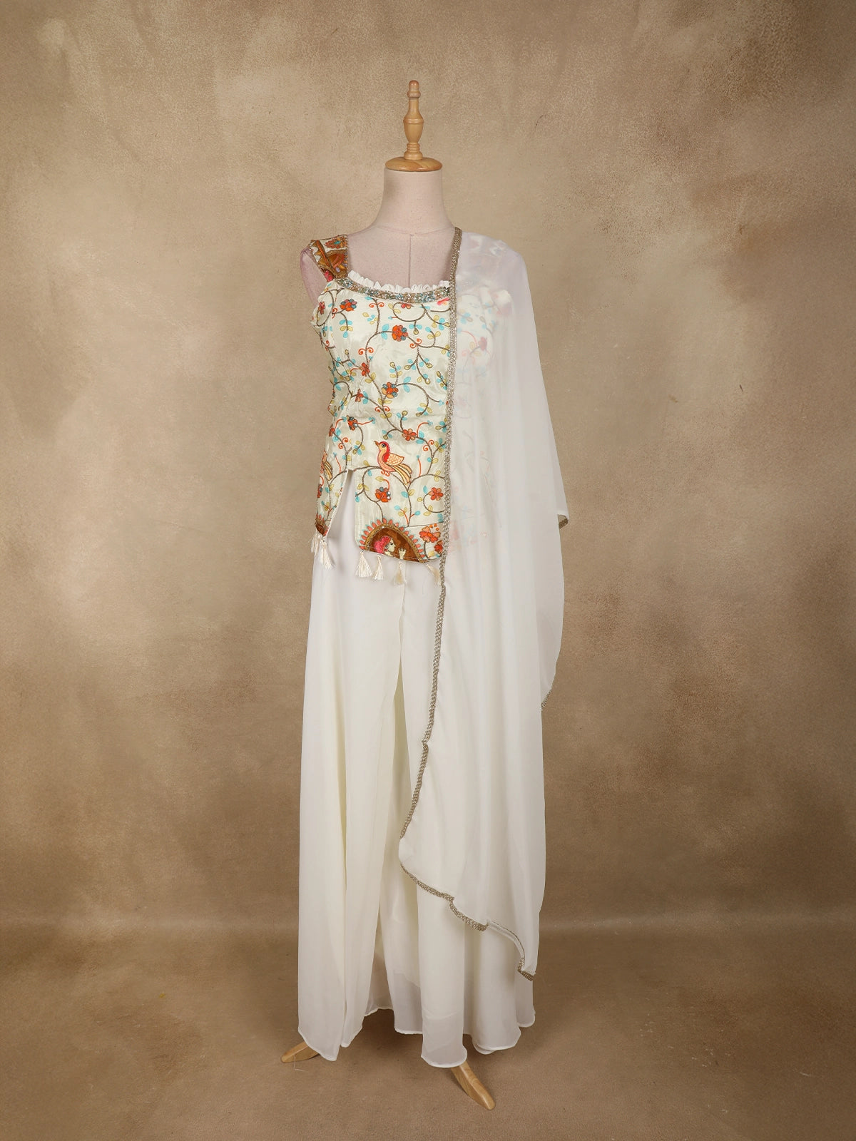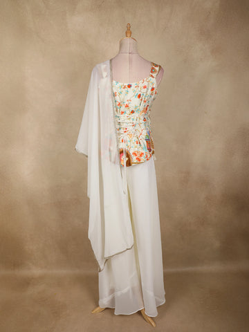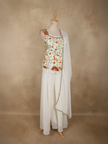 Ivory Floral Thread Embroidered Design Georgette Palazzo Suit with Dupatta
