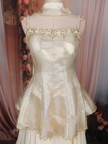 Make a statement in this exquisite Ivory Gold Tissue Peplum Palazzo Set, crafted to bring elegance and modern charm together in one luxurious ensemble. The shimmering tissue peplum top is adorned with delicate floral embroidery, adding a refined touch of sparkle. Its structured flare enhances the waistline beautifully, giving a graceful silhouette.