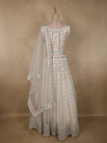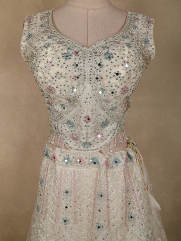 Ivory Mirror and Thread Embroidered Design Net Lehenga With Dupatta
