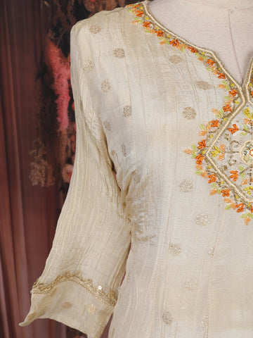 Ivory Thread and Mirror Embroidered Design Crushed Crepe Anarkali Salwar Suit