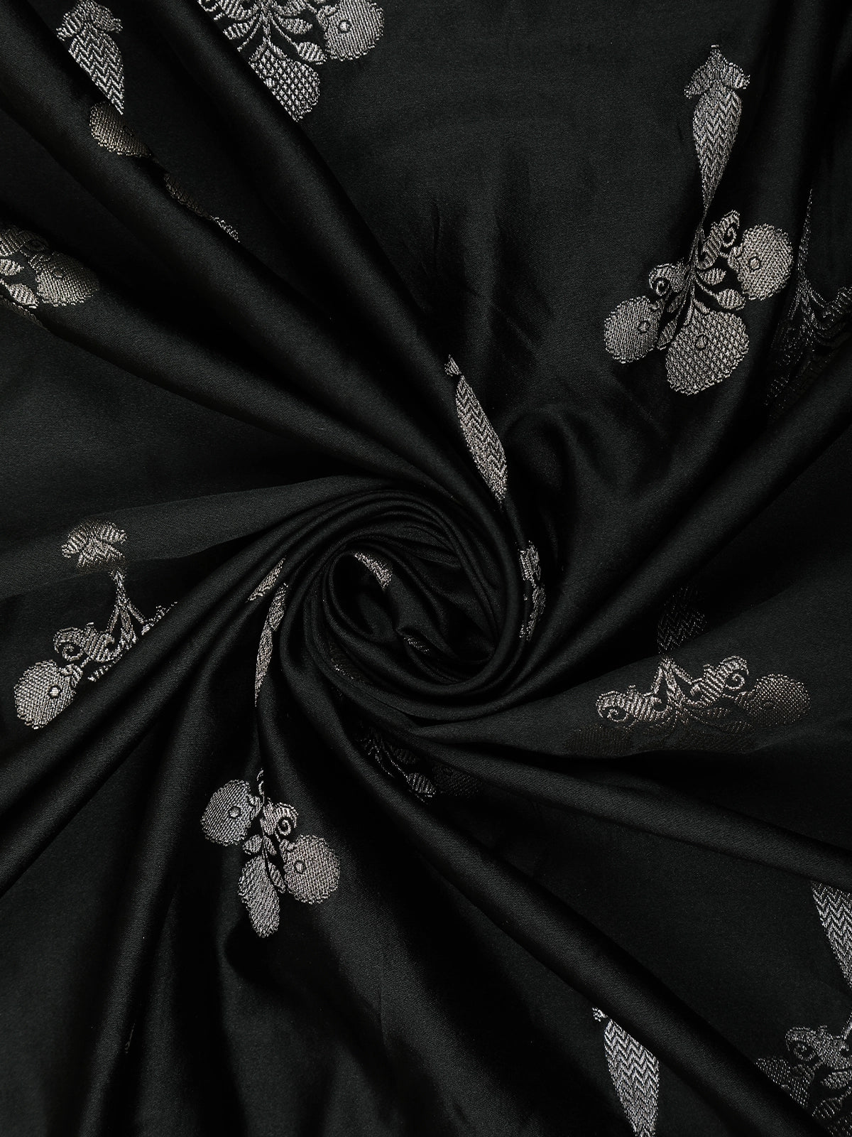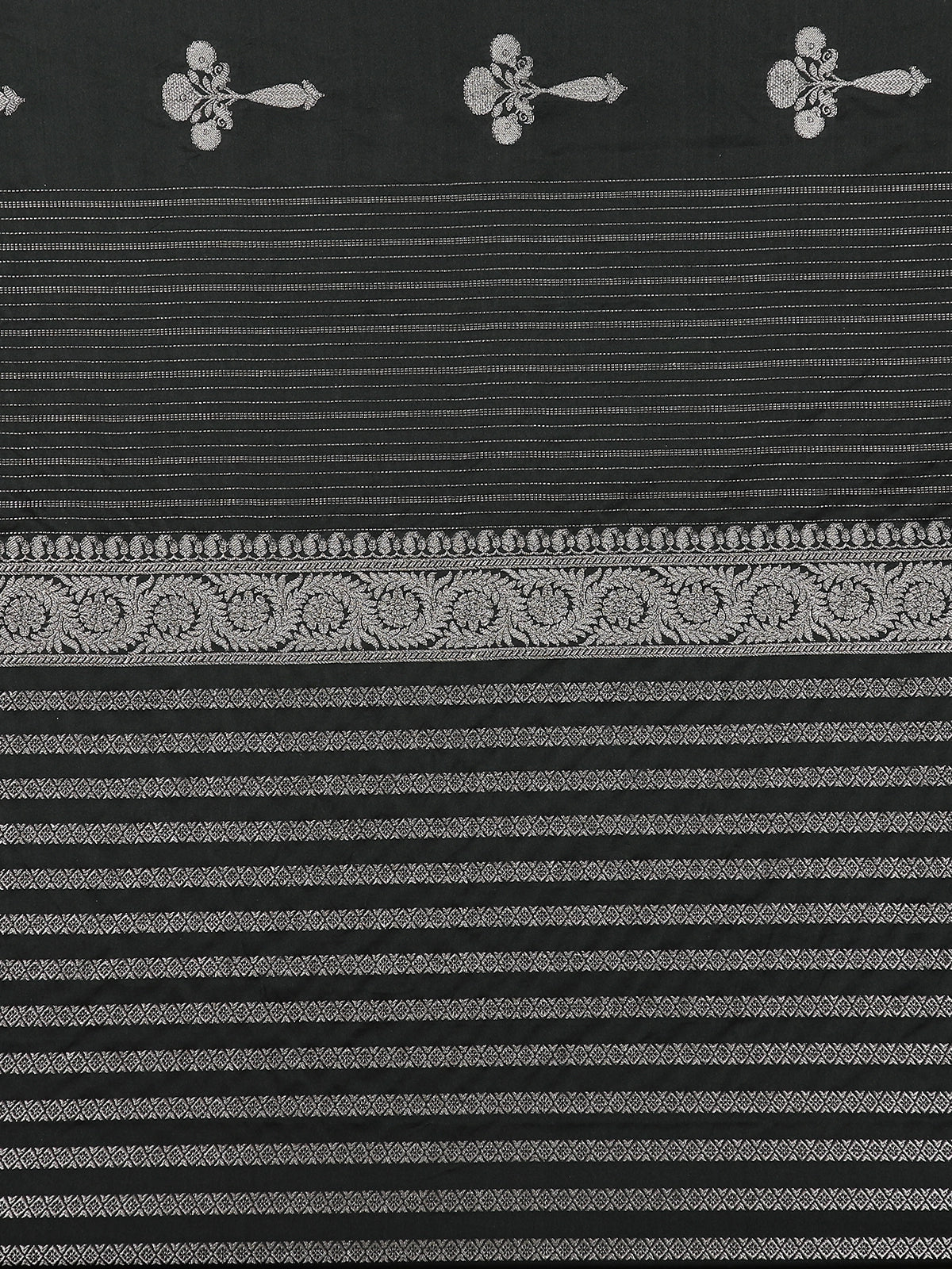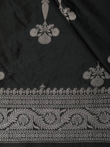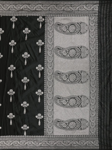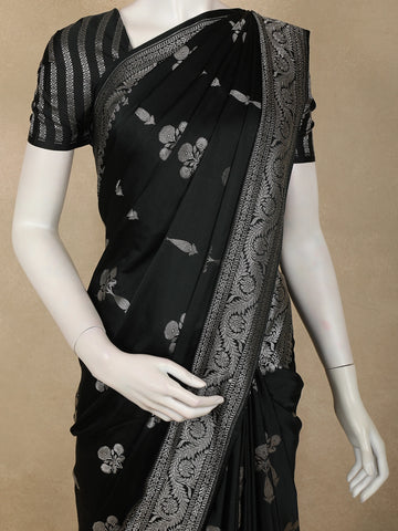 Jet Black Floral Zari Woven Design Pure Banarasi Silk Saree with Zari Border