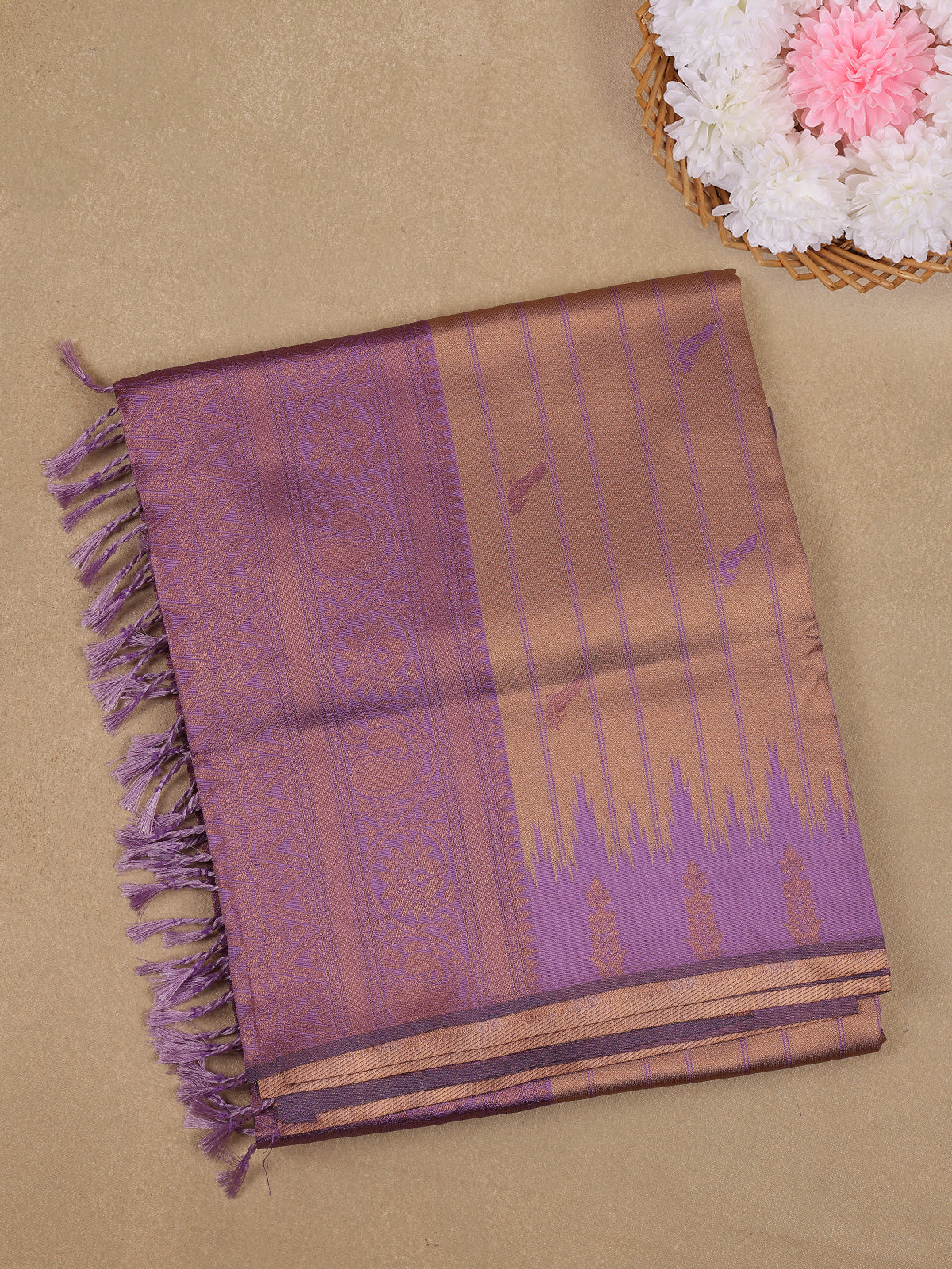 Lavender and Bronze Woven Art Silk Saree with Paisley Zari Border