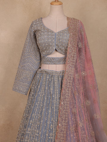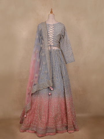 Lavender and Pink Ombre Sequins Embroidered Net Lehenga with Dupatta