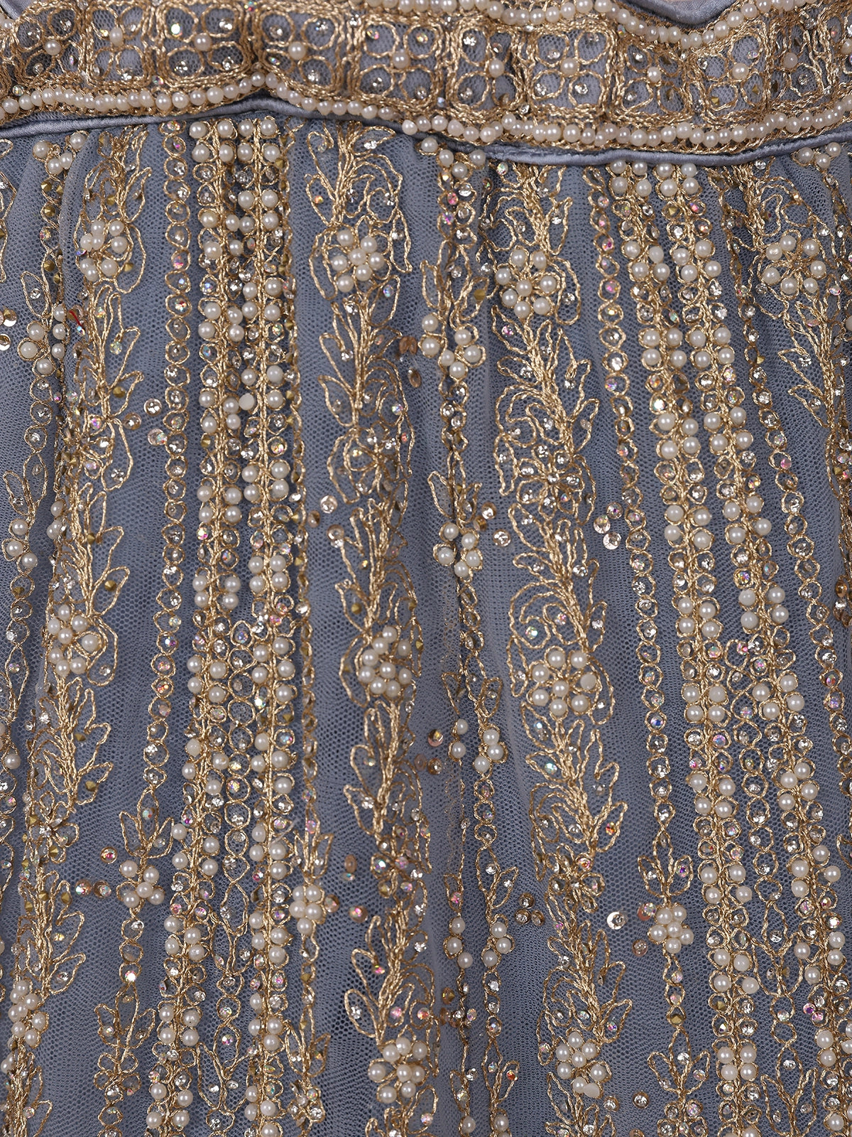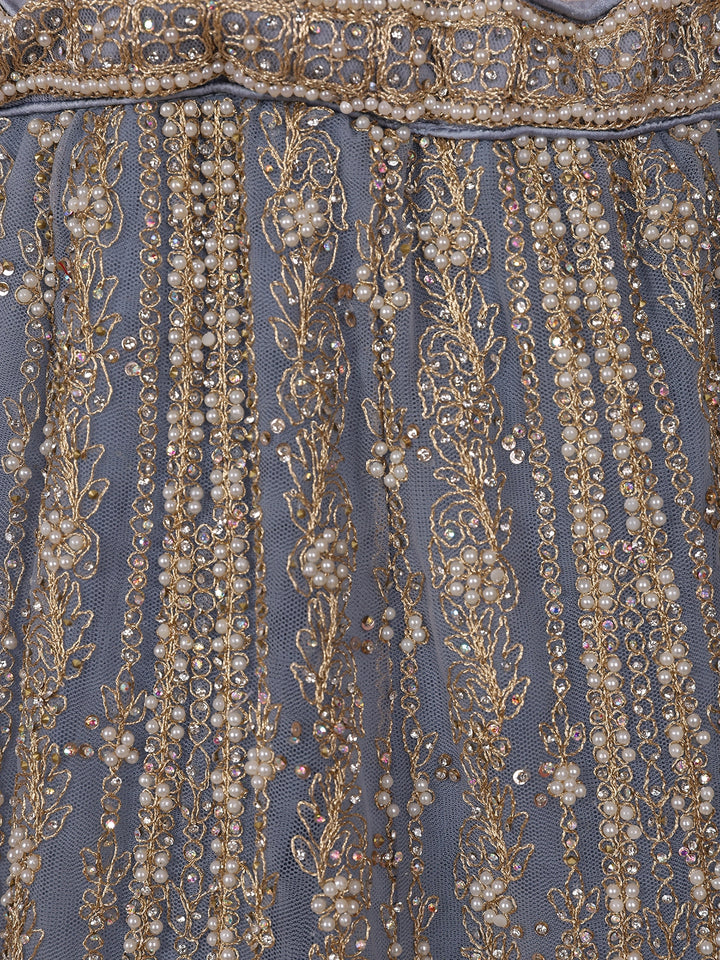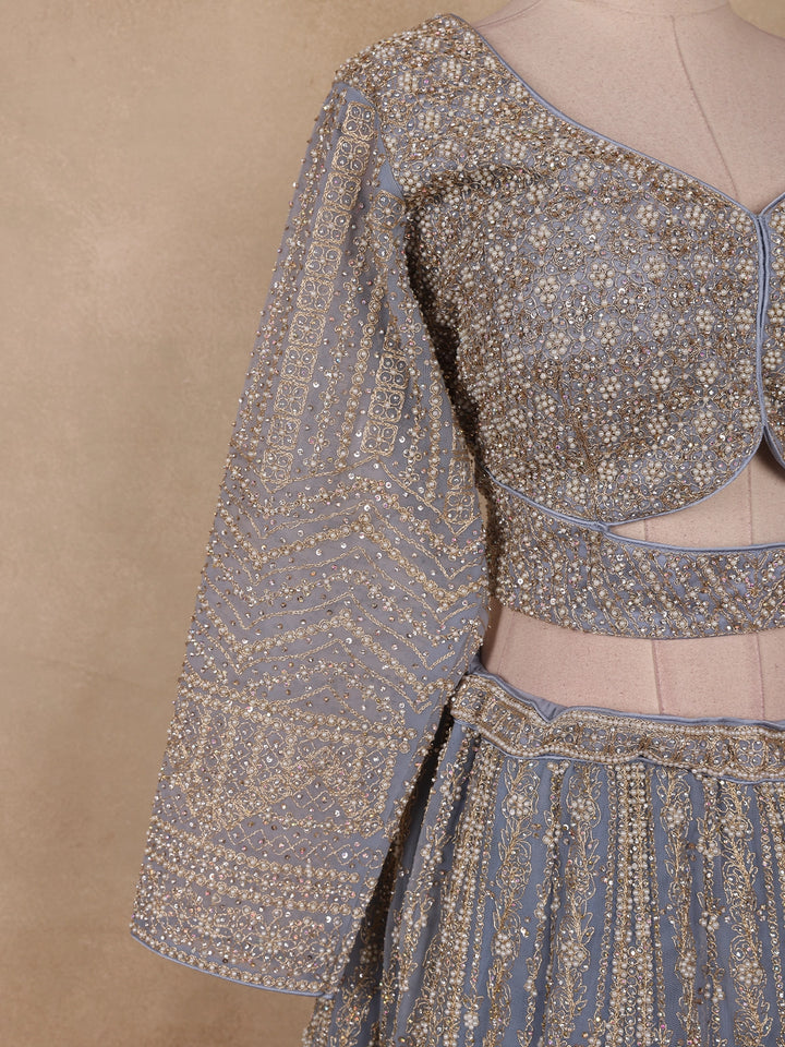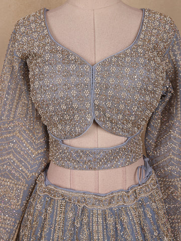 Perfect for wedding receptions, cocktail events, or grand festive celebrations, this lehenga is a vision of grace, glamour, and craftsmanship—ideal for the modern bride or fashion-forward bridesmaid.