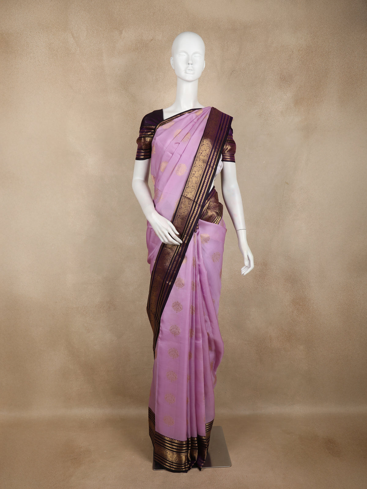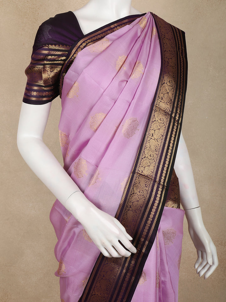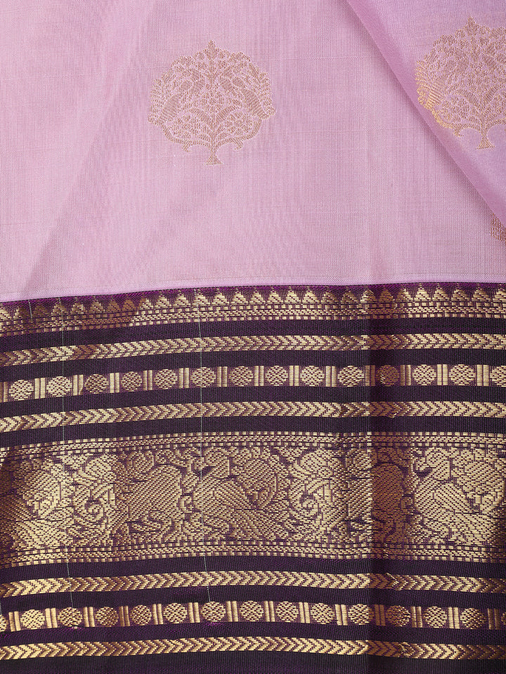 Lavender Butta Woven Kanchipuram Silk Saree With Zari Border