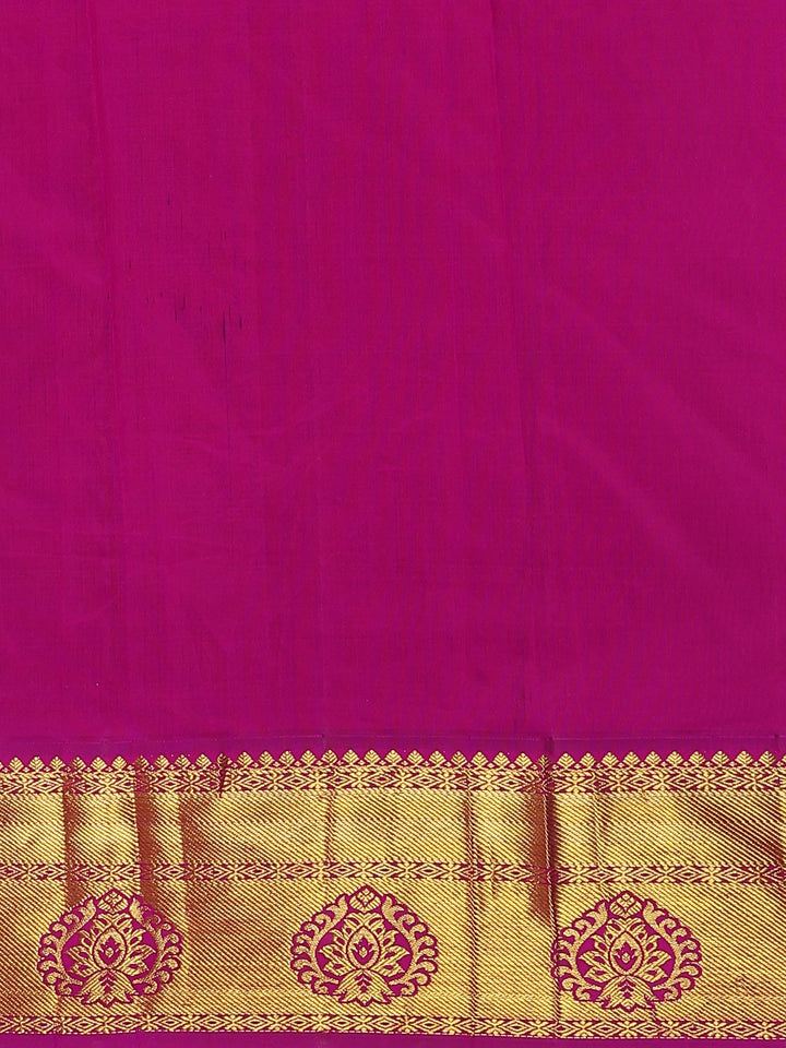 Paired with a vibrant contrast pink blouse, this saree radiates elegance and luxury — ideal for bridal wear, festive celebrations, and cultural gatherings. The fine silk weave drapes beautifully, ensuring both comfort and grandeur with every fold.