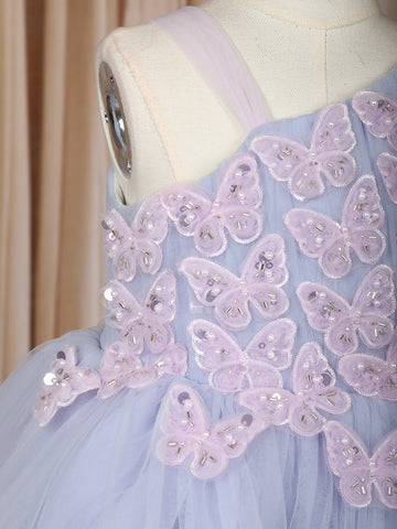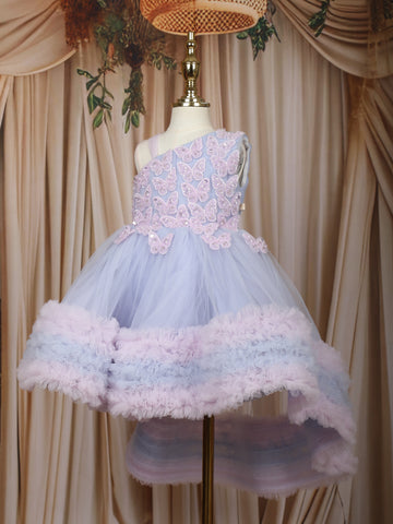 Lavender Butterfly Layered Design Net Ruffle Frock