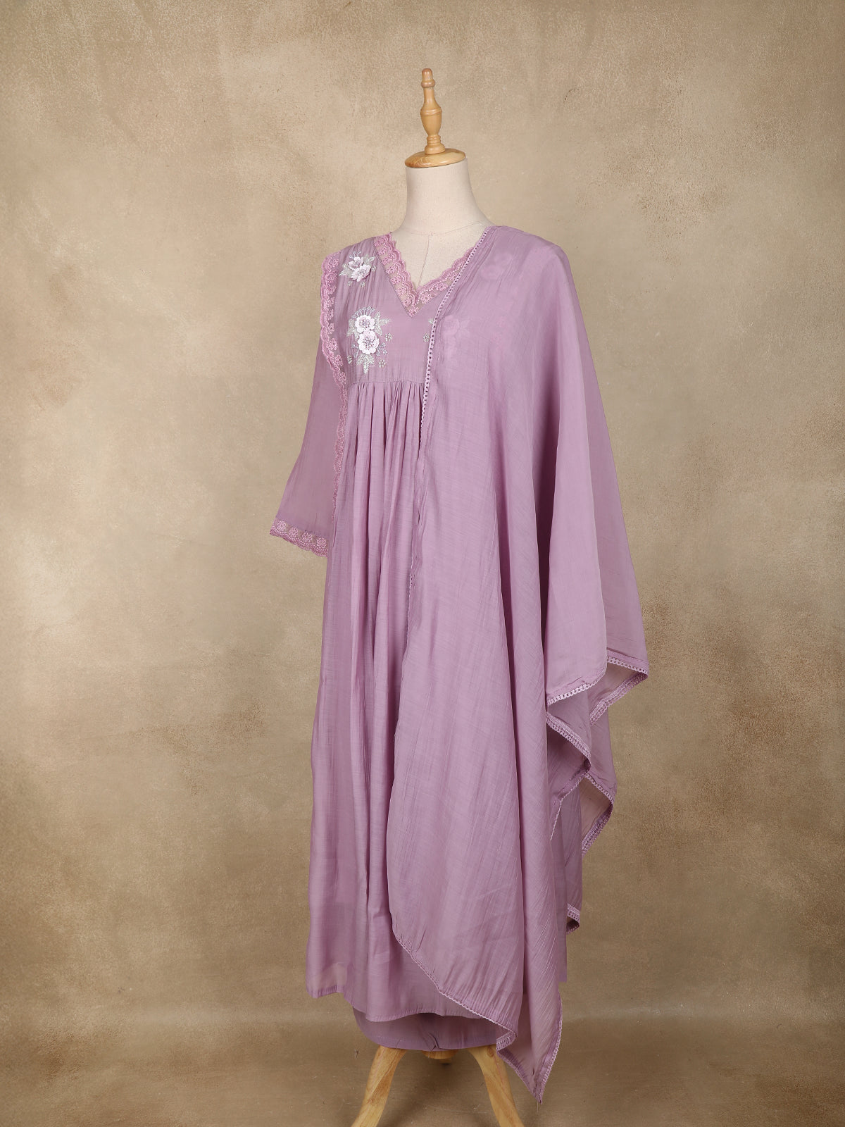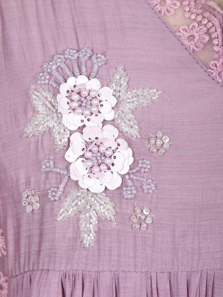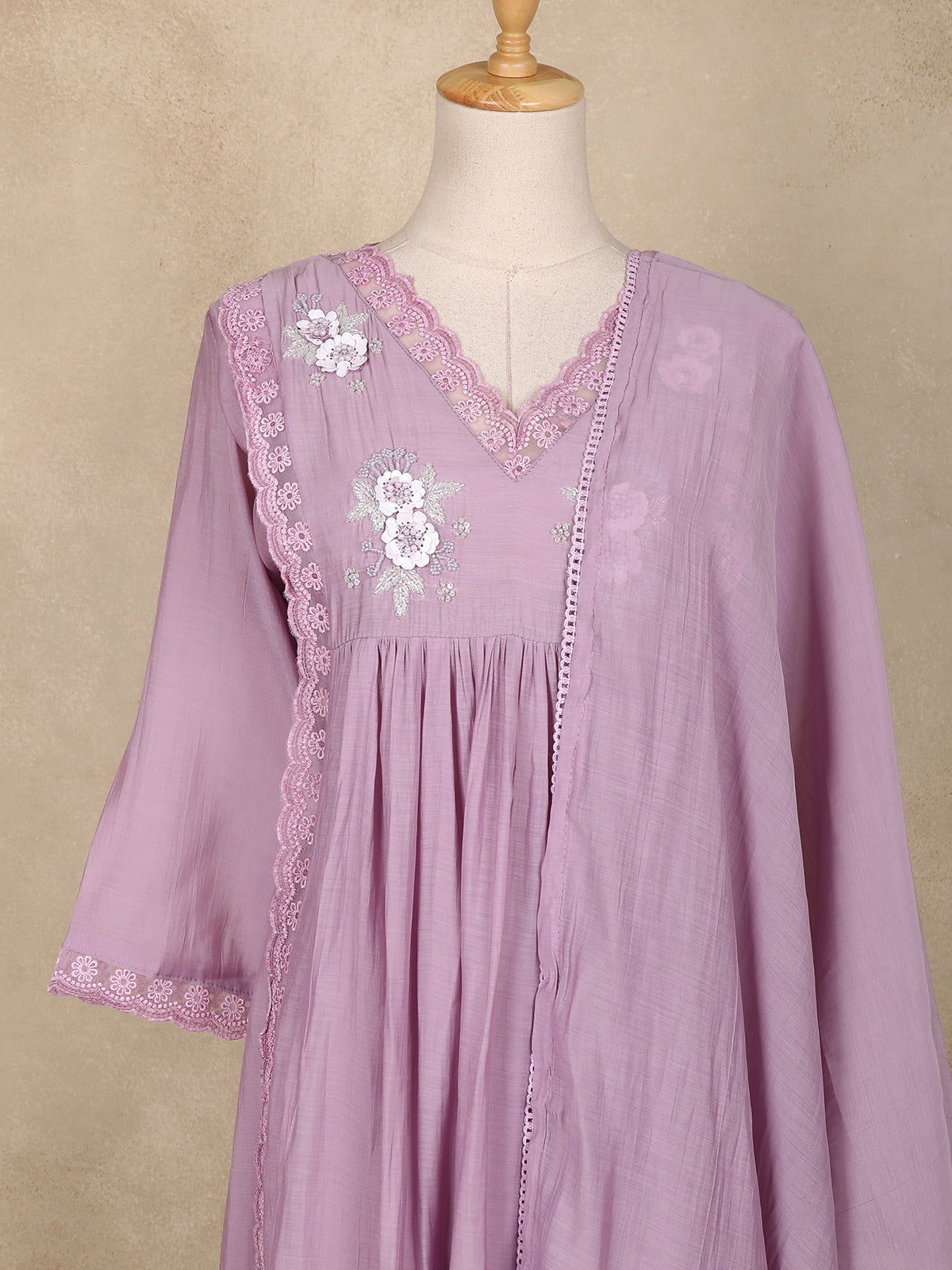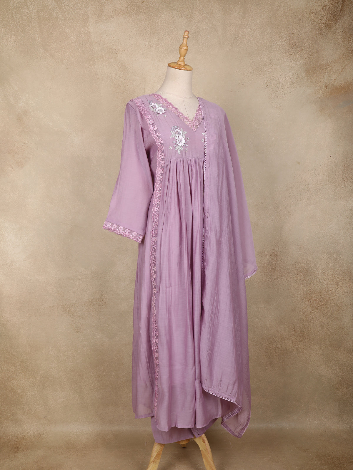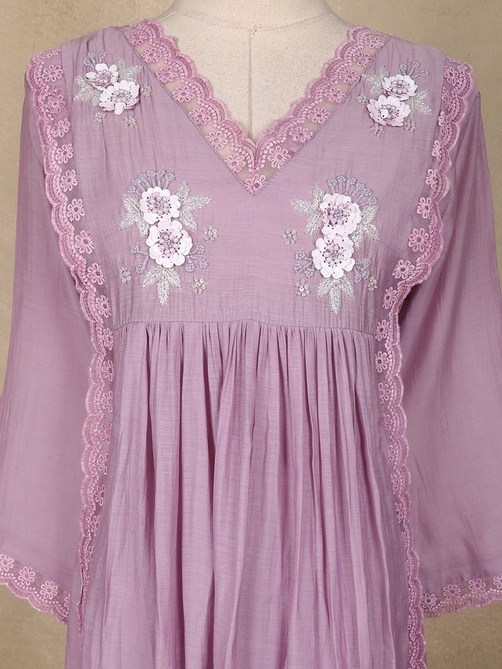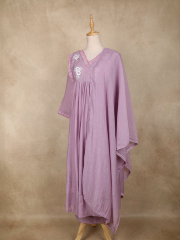Lavender Floral Appliqué Embroidered Cotton Salwar Suit with Scallop Lace