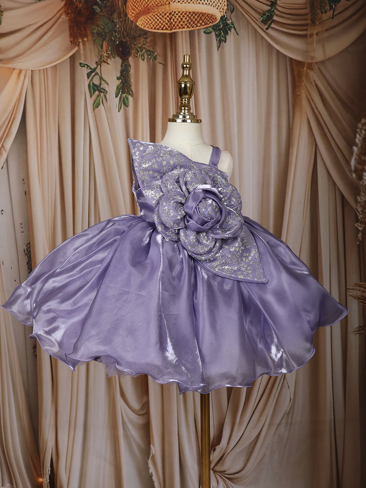 Dress your little princess in pure elegance with this stunning Lavender Satin Party Frock, crafted to make her shine on every special occasion. The frock features a beautiful asymmetric neckline that adds a touch of sophistication, paired with a voluminous layered satin skirt that creates a graceful, twirl-worthy silhouette.