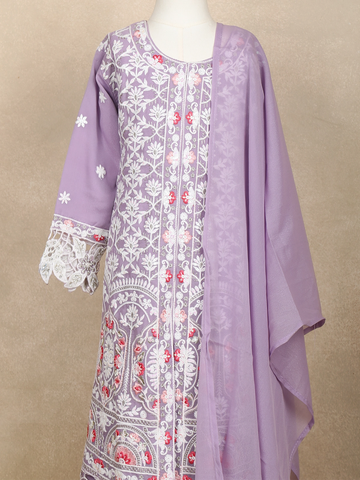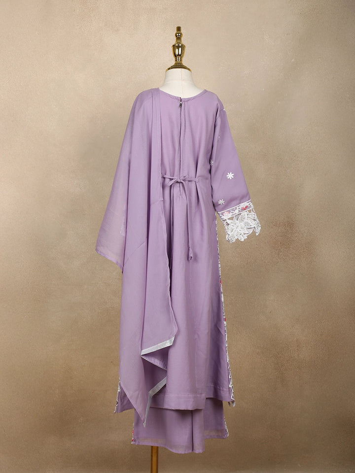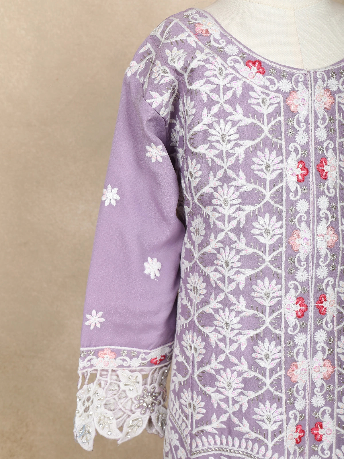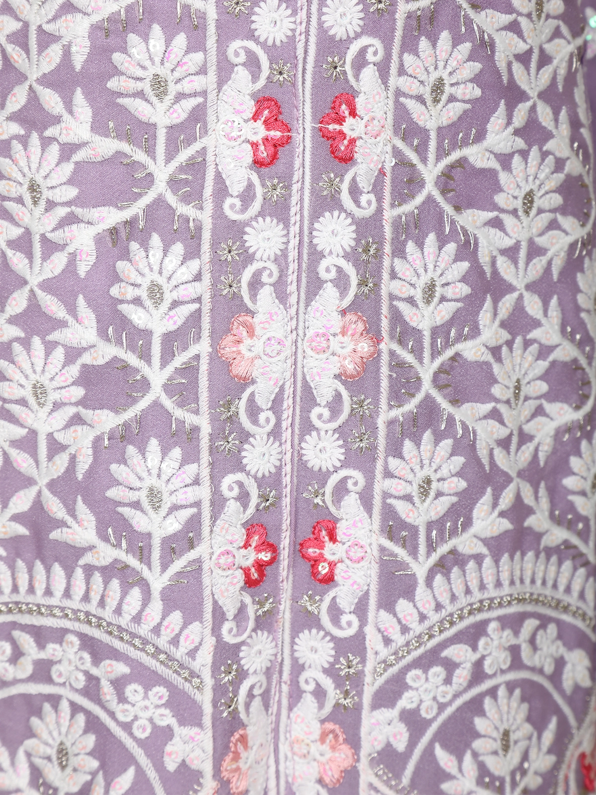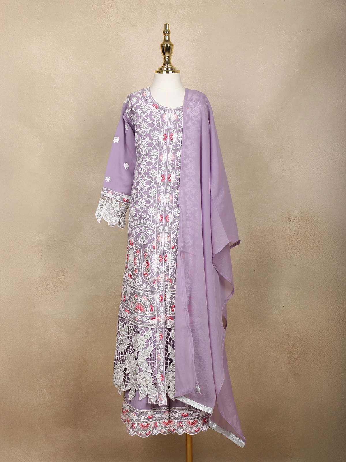 Lavender Floral Embroidered Kids Georgette Palazzo Suit with Dupatta