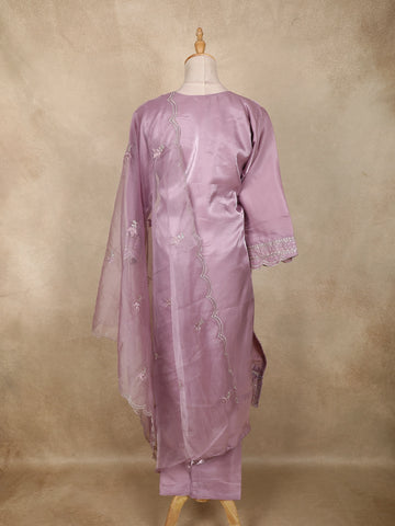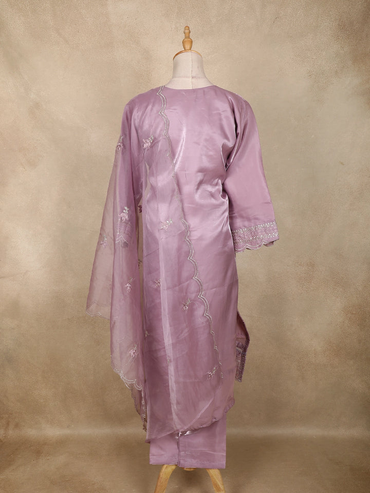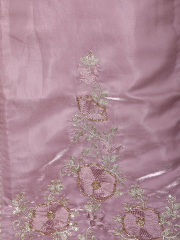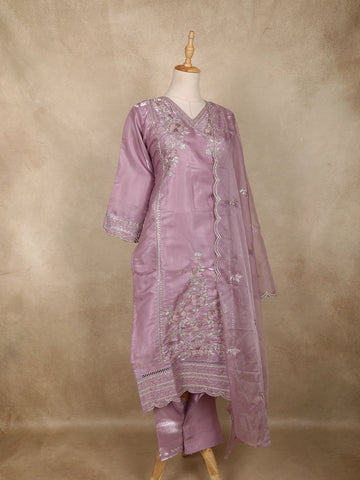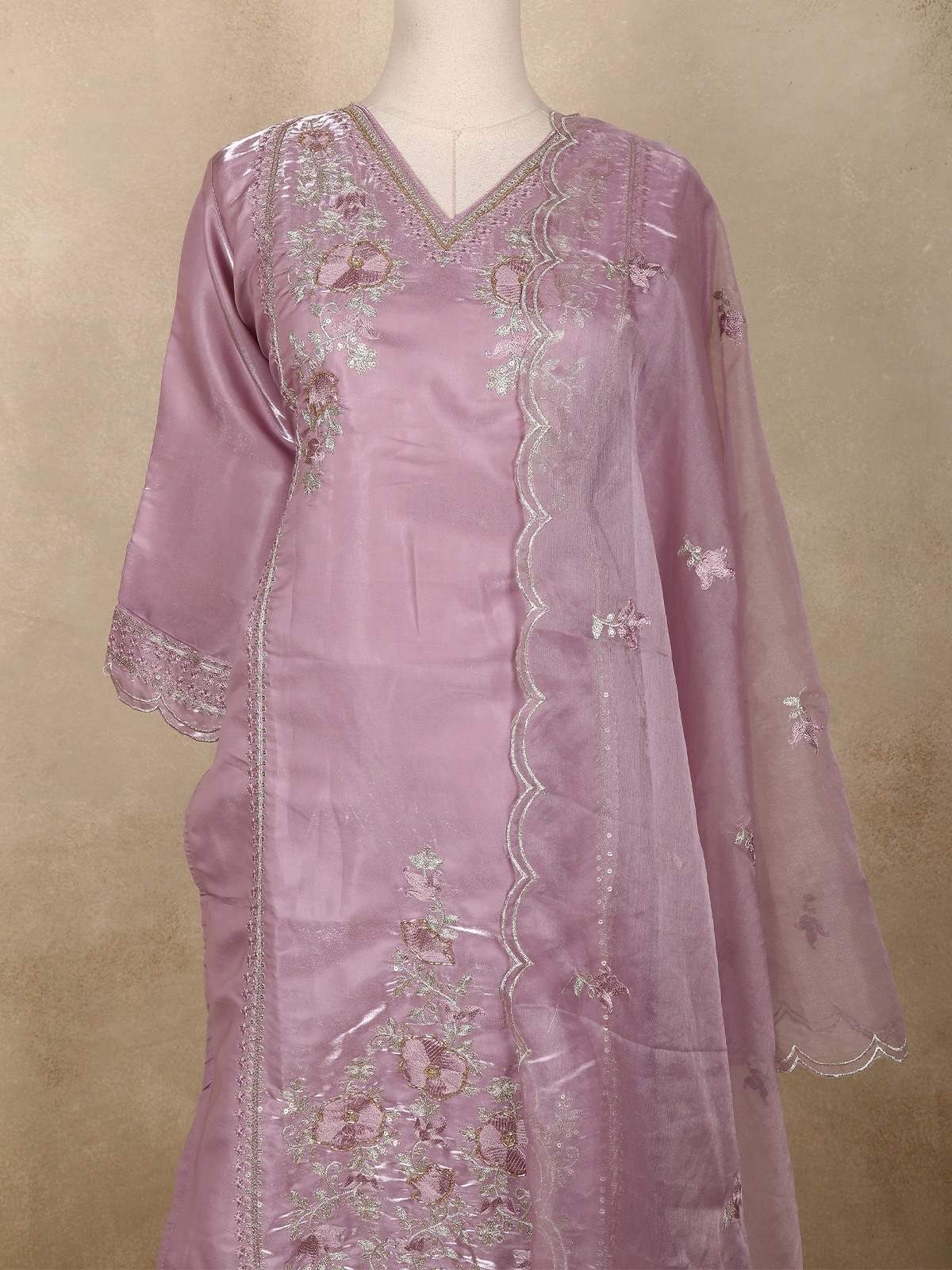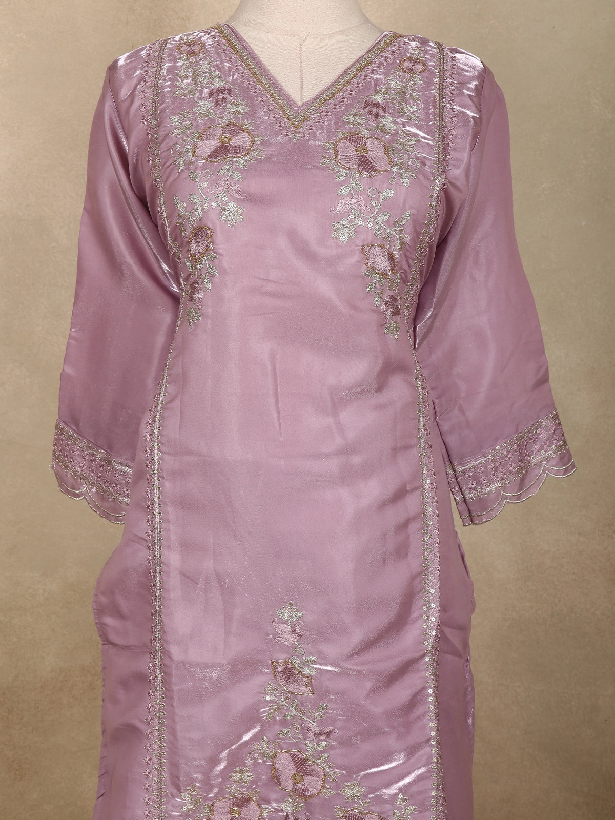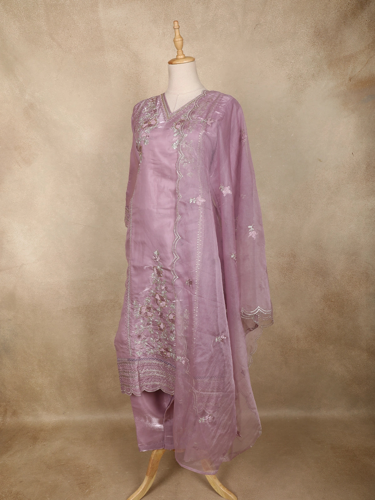 Lavender Floral Embroidered Tissue Cotton Straight Cut Salwar Suit with Dupatta