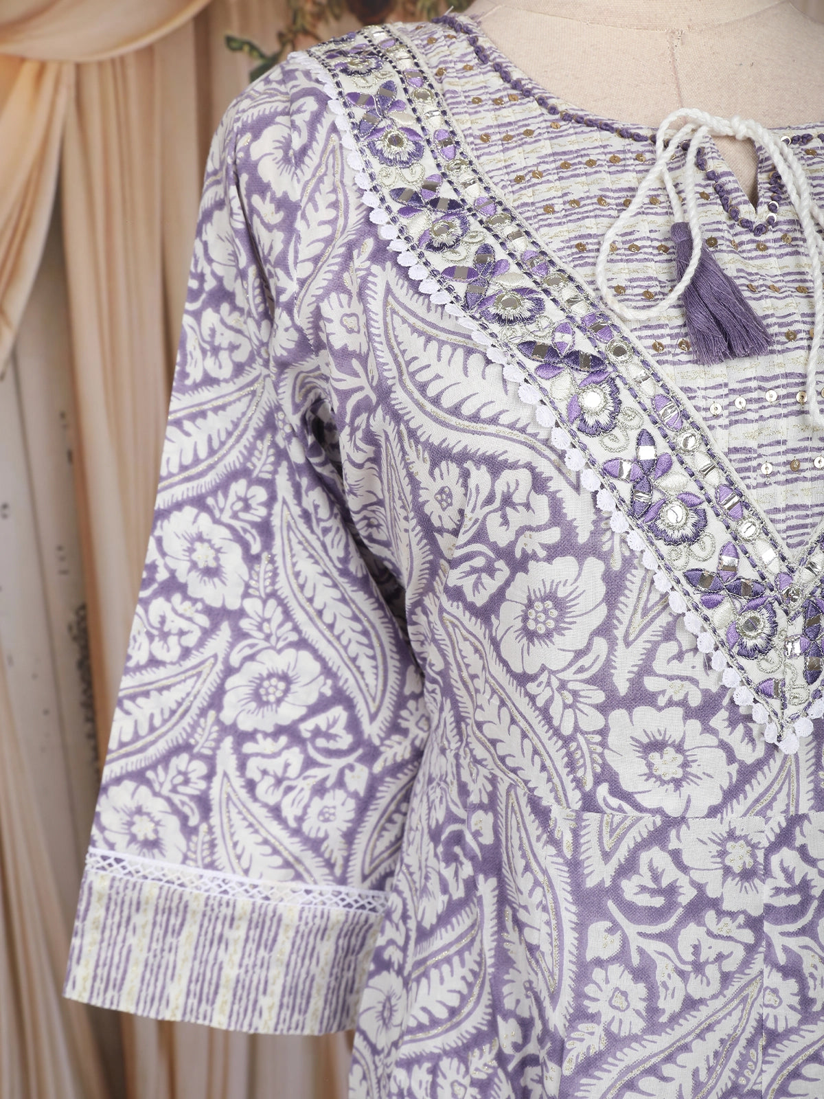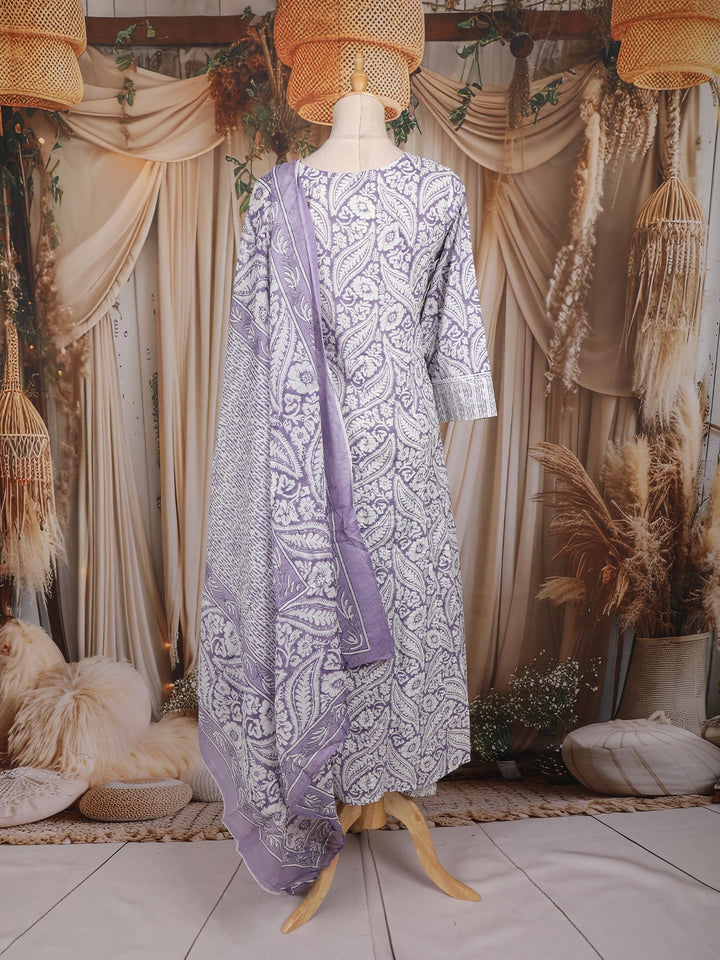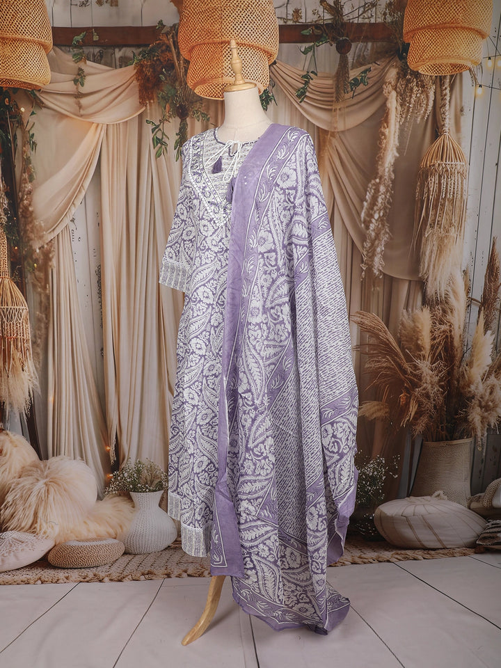 Lavender Floral Mirror Embroidered Cotton Salwar Suit with Dupatta