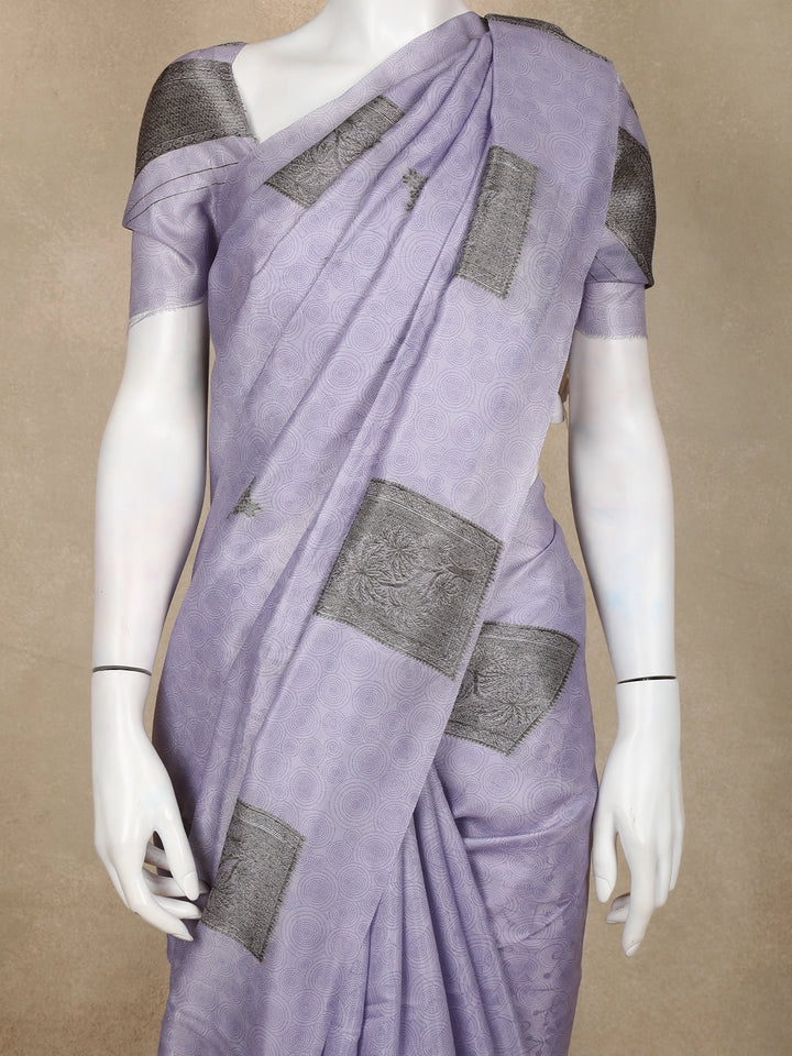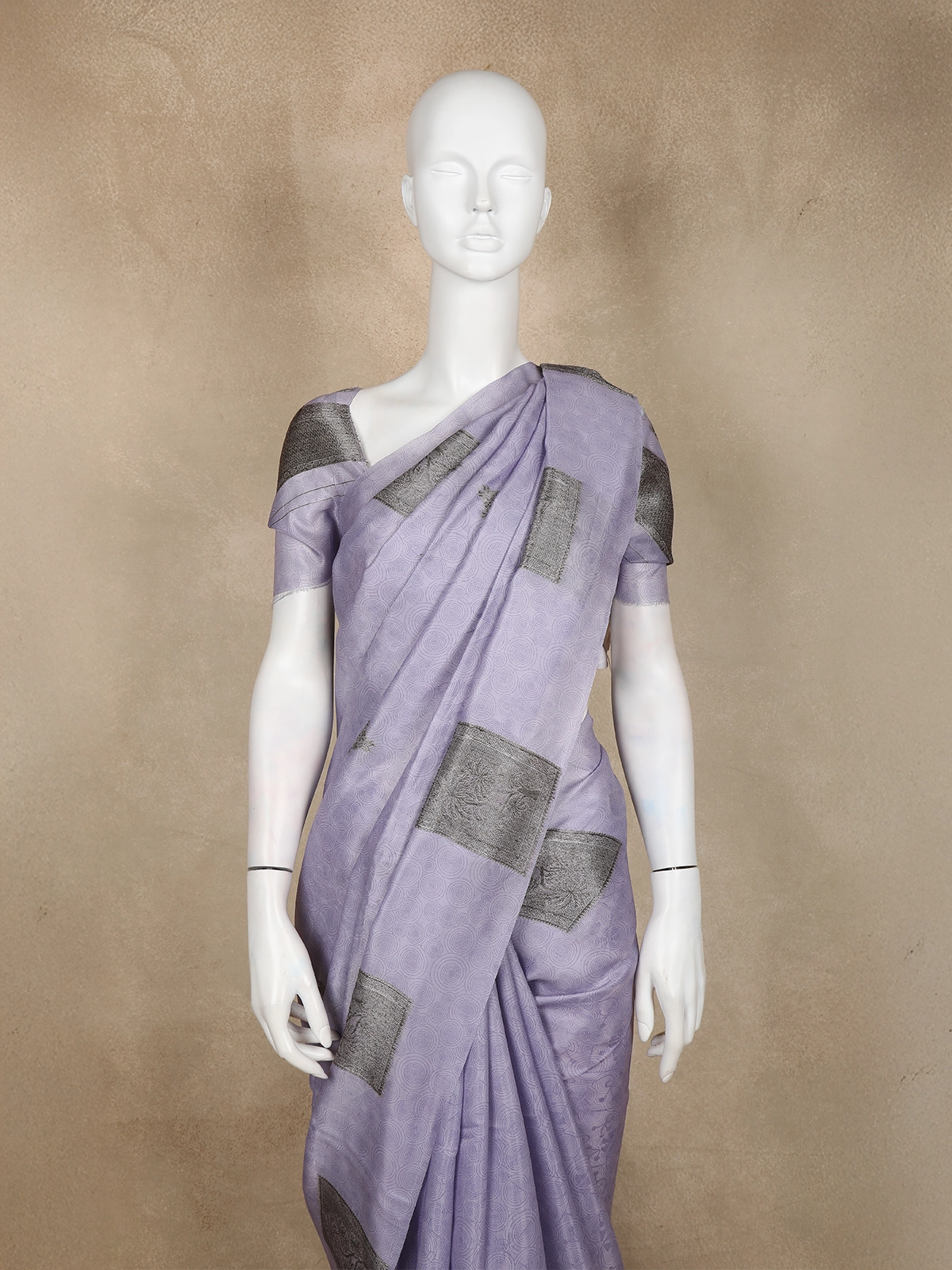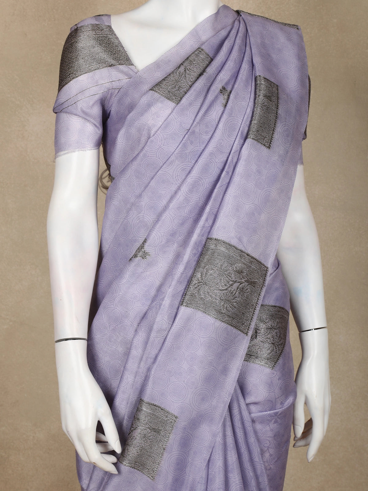 The pastel lavender hue is beautifully adorned with delicate floral prints, adding a refreshing and feminine appeal. Lightweight and effortlessly stylish, this saree is ideal for festive gatherings, office celebrations, and elegant daytime events.