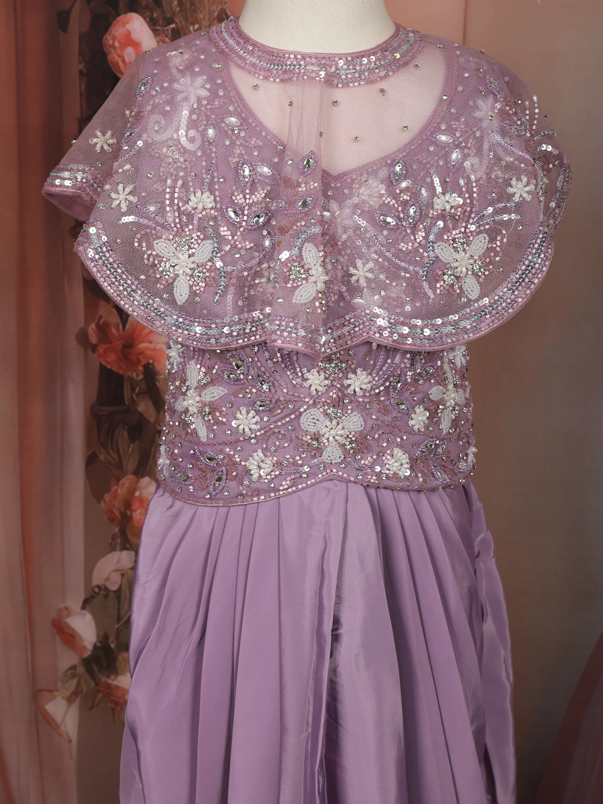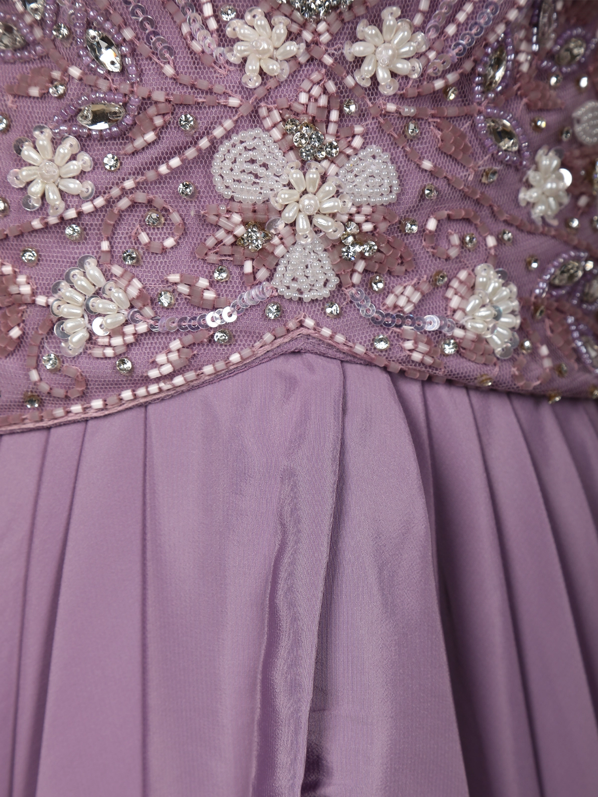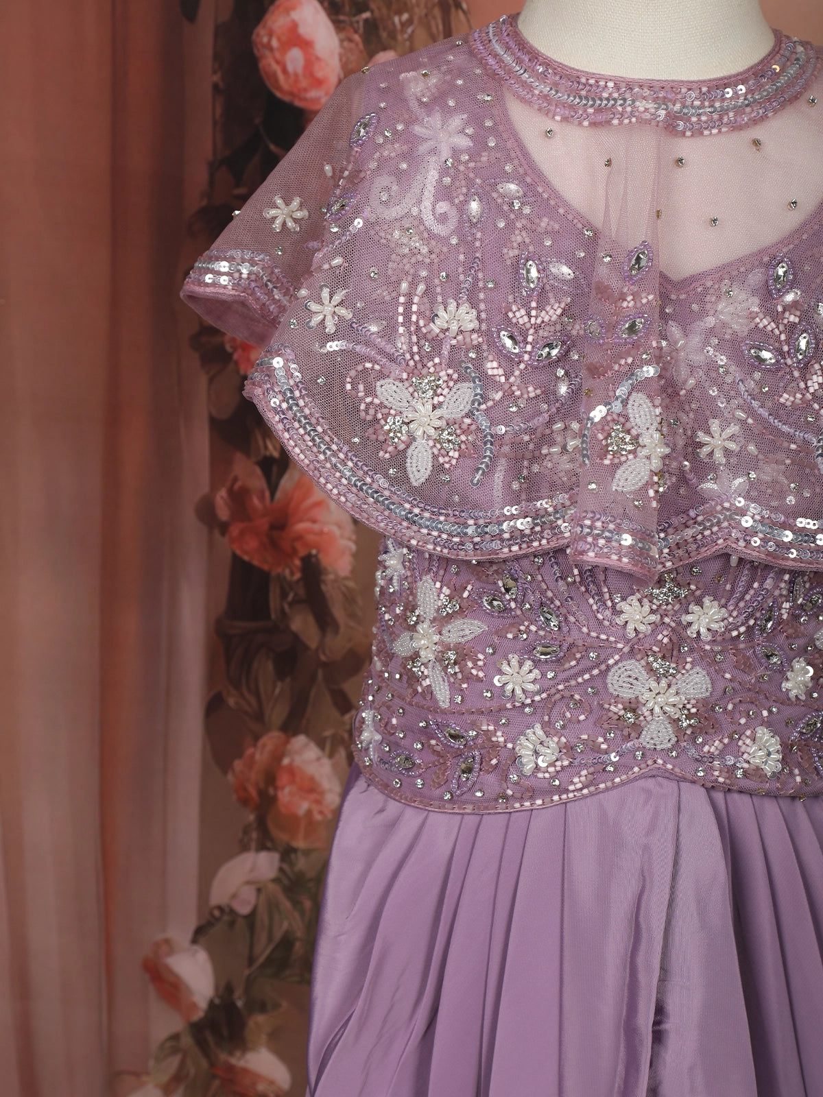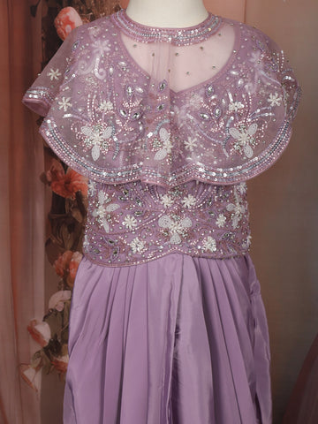 Lavender Floral Sequins and Beads Embroidered Net Lehenga