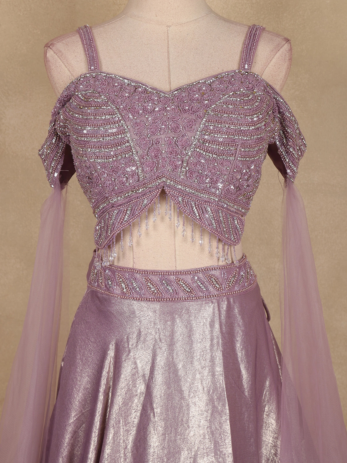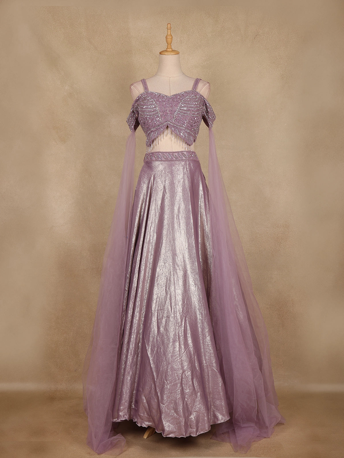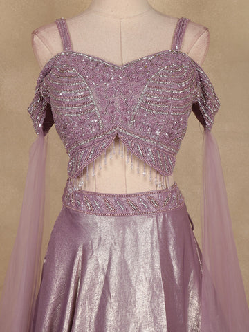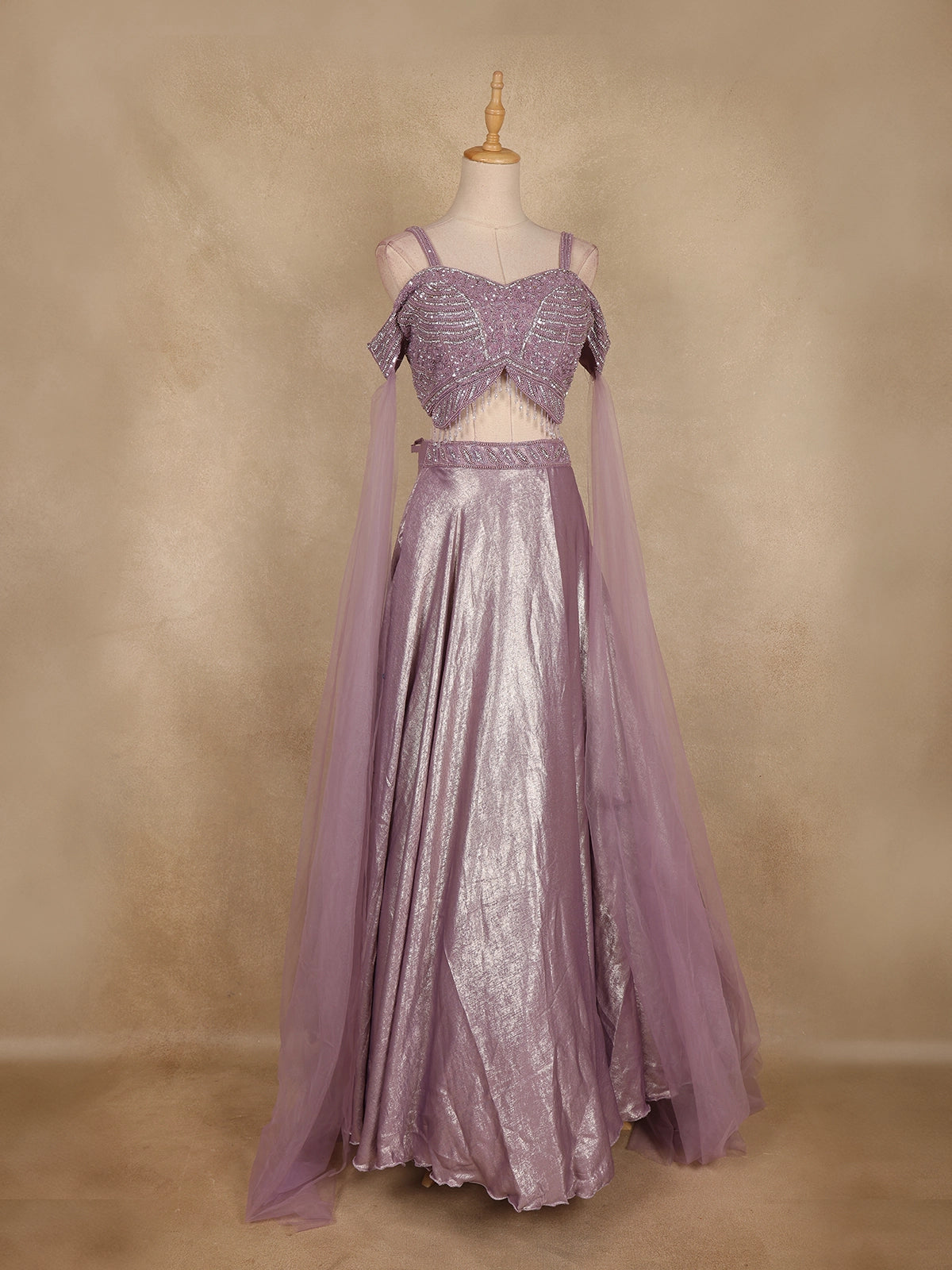 Lavender Floral Sequins Embroidered Metallic Crepe Lehenga