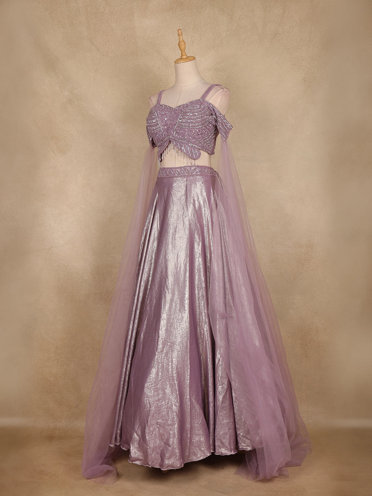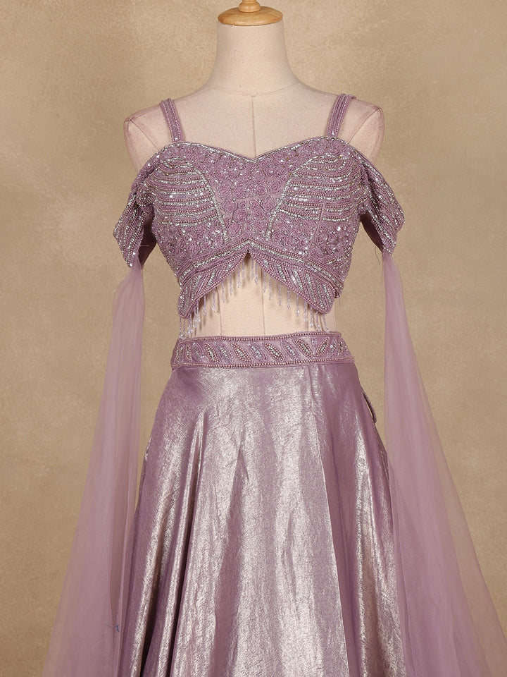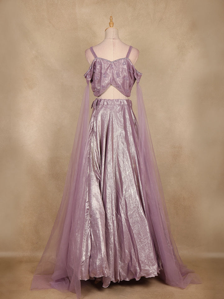 Lavender Floral Sequins Embroidered Metallic Crepe Lehenga