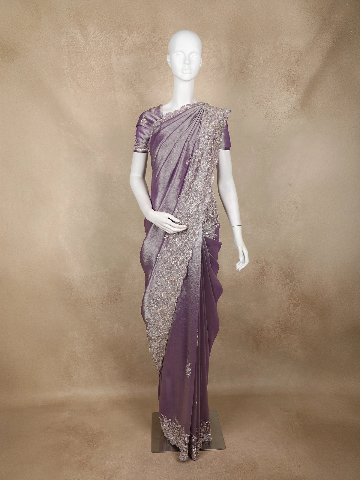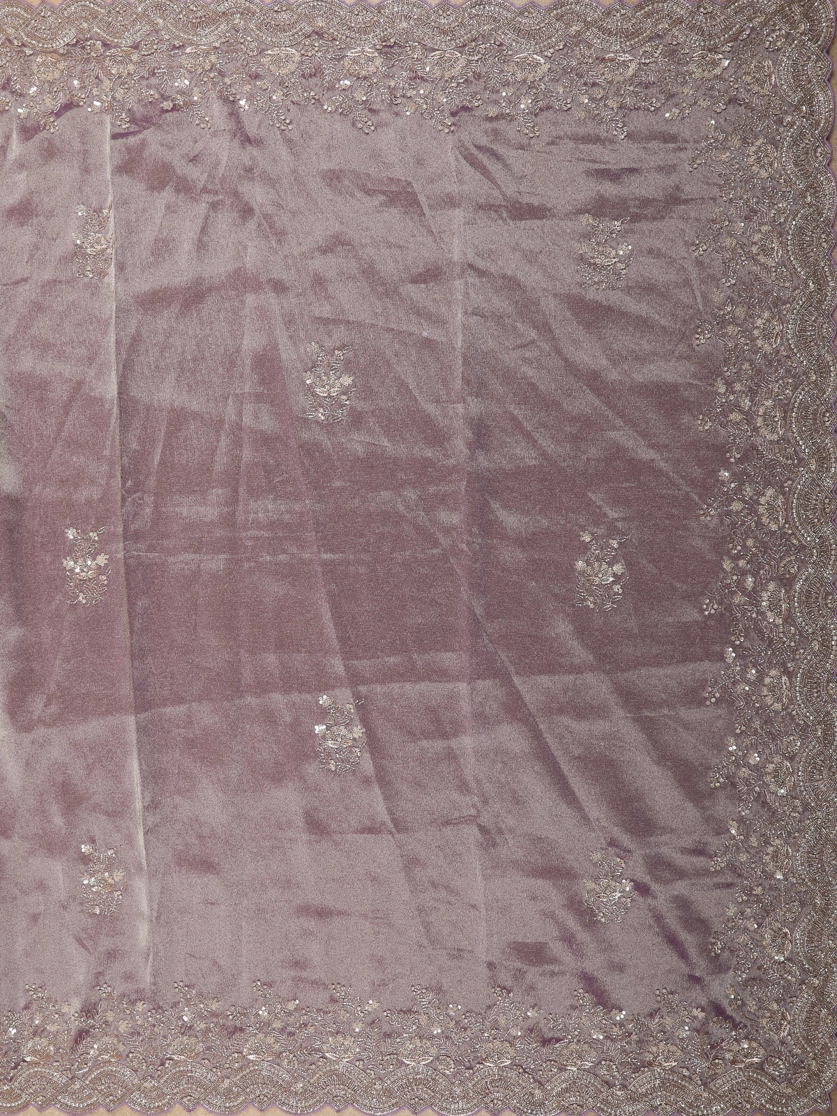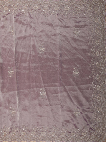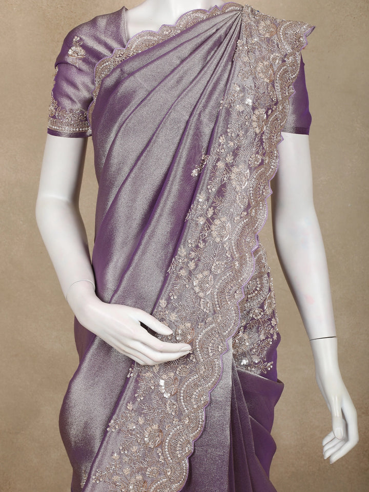 Lavender Floral Sequins Embroidered Pure Tissue Silk Saree with Designer Border