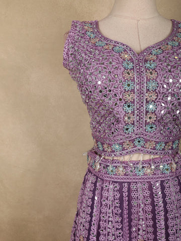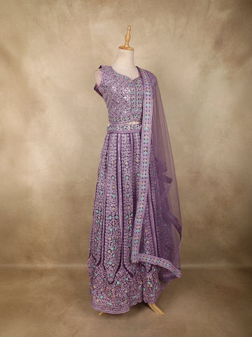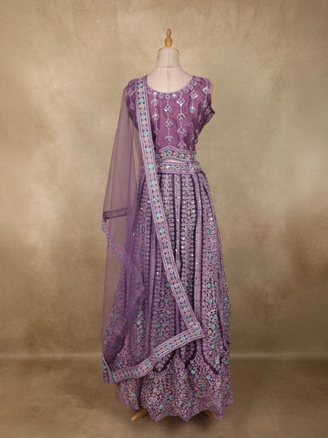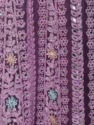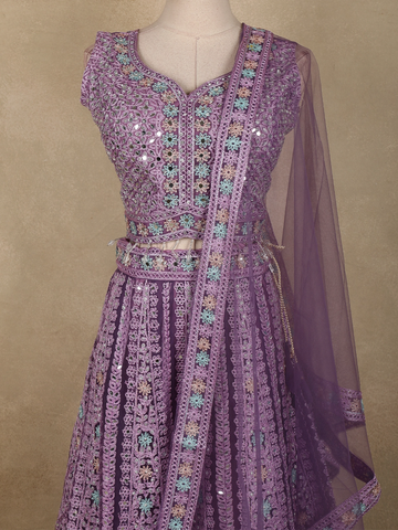 Lavender Floral Thread Embroidered Design Net Party Wear Lehenga With Net Dupatta