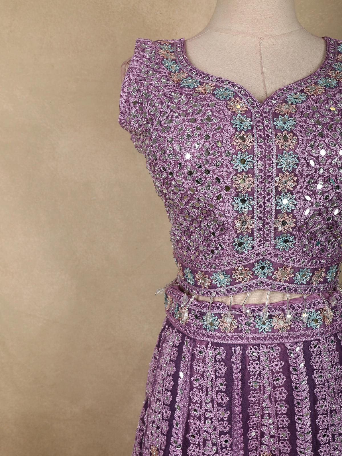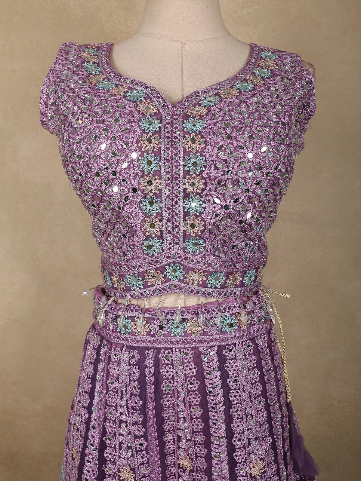 Step into elegance with this enchanting lavender net lehenga, beautifully crafted to bring out a refined festive charm. Designed for celebrations that call for grace and glamour, this lehenga set is a perfect blend of delicate craftsmanship and contemporary appeal.
