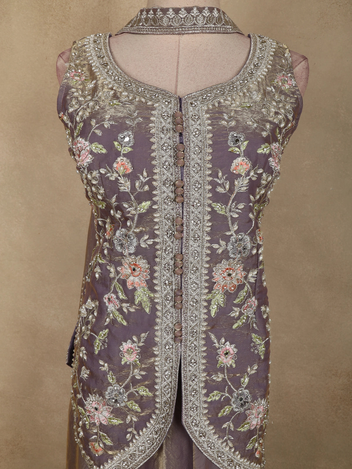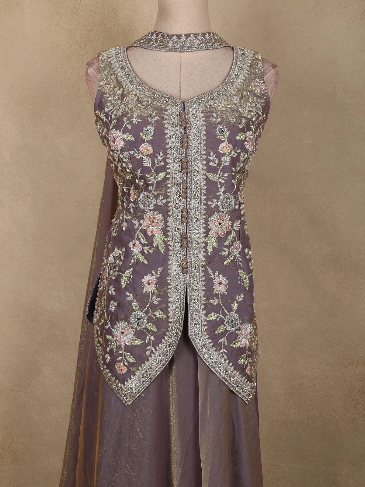 Exude understated elegance with this Lavender Floral Thread Embroidered Design Organza Lehenga with Dupatta, a graceful ensemble crafted for refined festive and wedding occasions. The beautifully tailored blouse features intricate floral thread embroidery, delicately highlighted with subtle embellishments that add depth and artisanal charm. The soft olive green hue lends a calm, sophisticated appeal, perfect for day and evening celebrations.