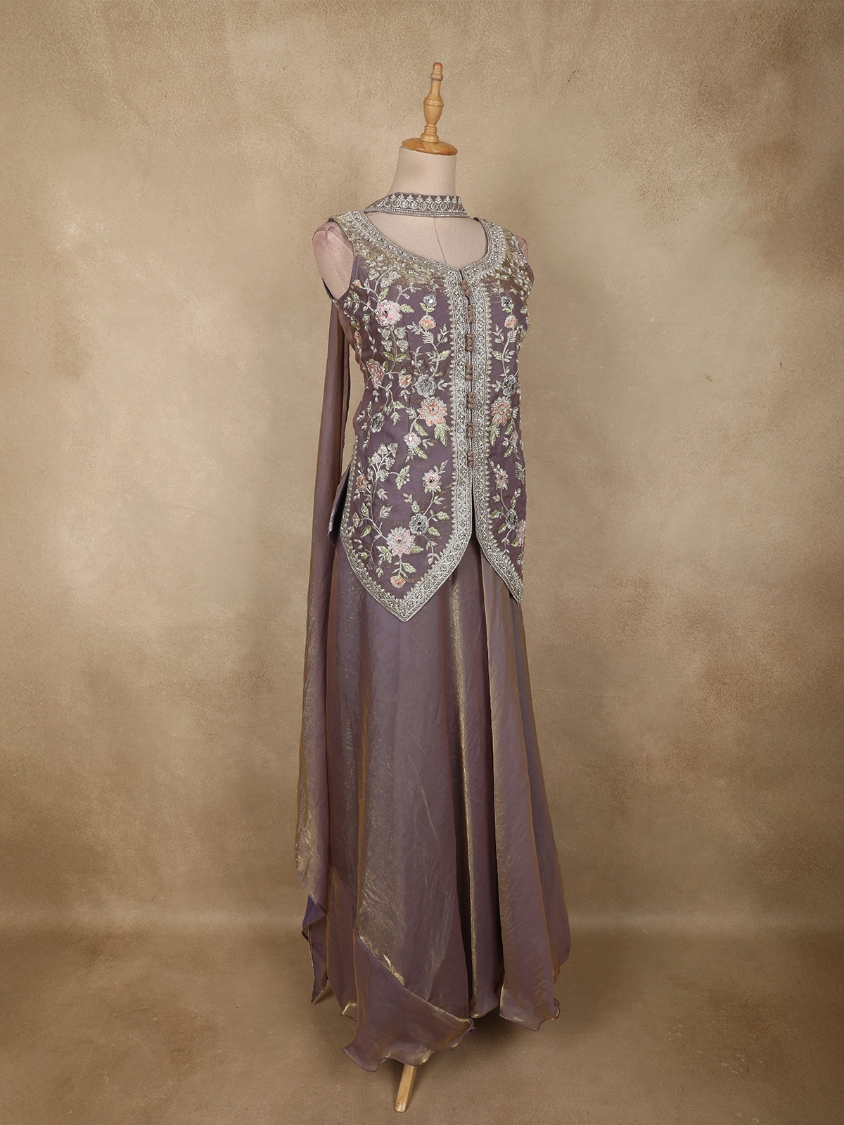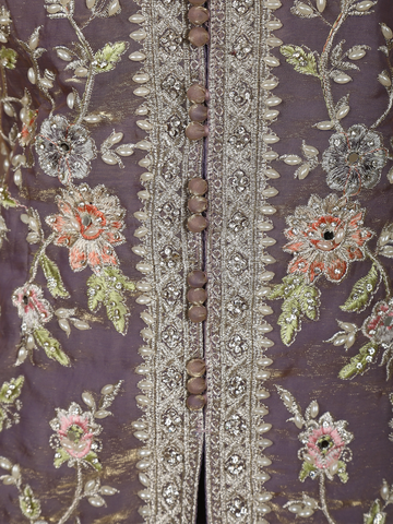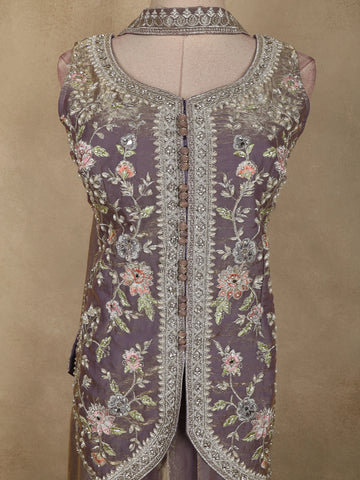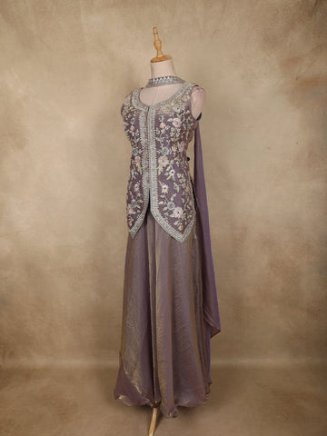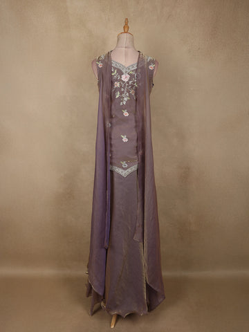Lavender Floral Thread Embroidered Design Organza Lehenga with Dupatta