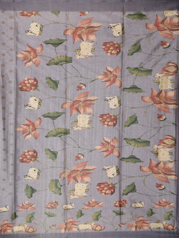 Lavender Grey Floral Printed Design Semi Tussar Fancy Saree with Floral Border