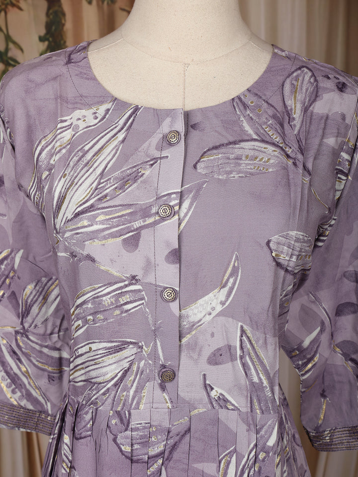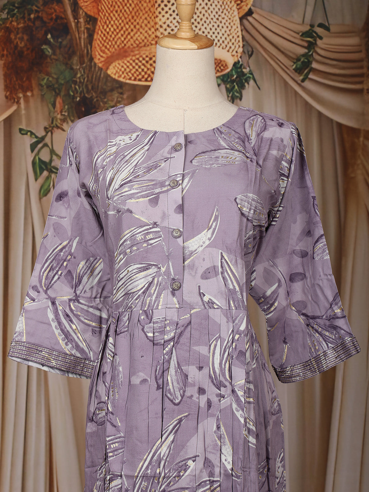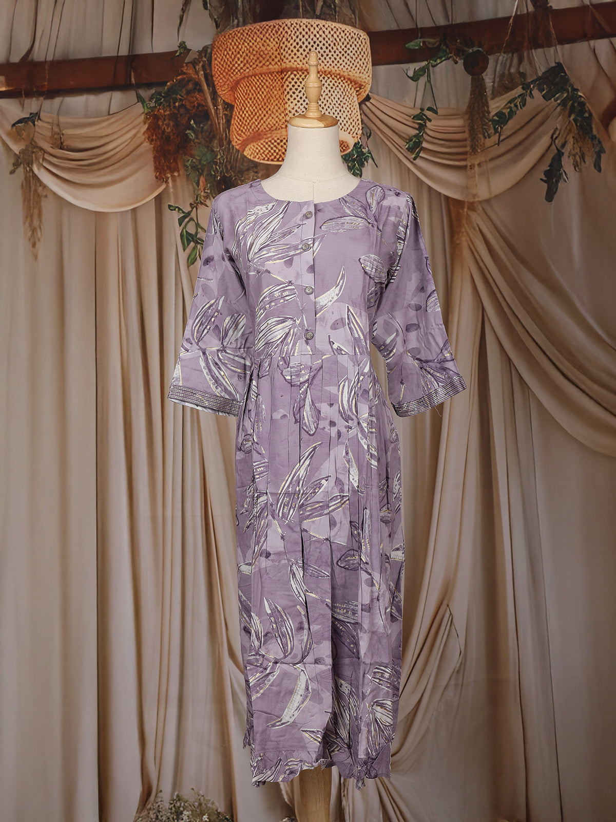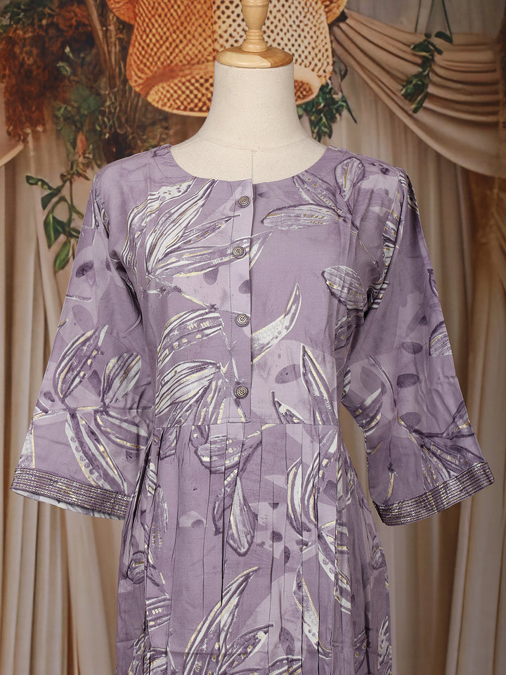 Embrace effortless elegance with this Lavender Leaf Printed Cotton Kurti, a perfect blend of comfort, tradition, and contemporary flair. Crafted from soft and breathable cotton, this kurti ensures all-day ease while maintaining a graceful ethnic appeal. The soothing lavender base is beautifully complemented with delicate leaf prints, giving it a refreshing and serene look ideal for both daily wear and semi-formal occasions.