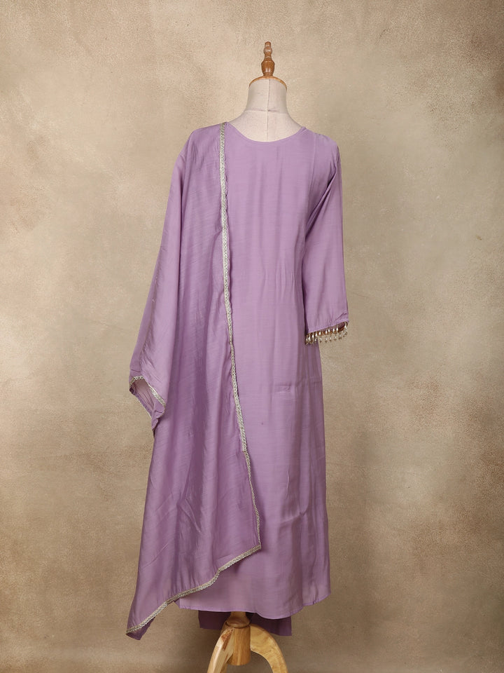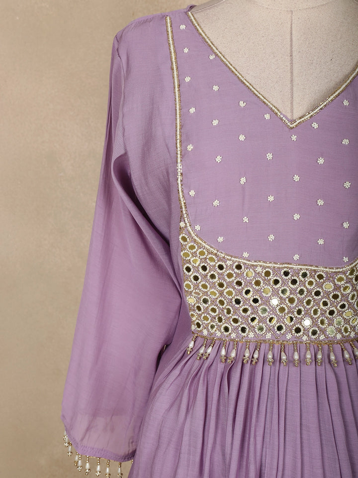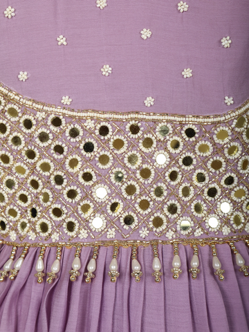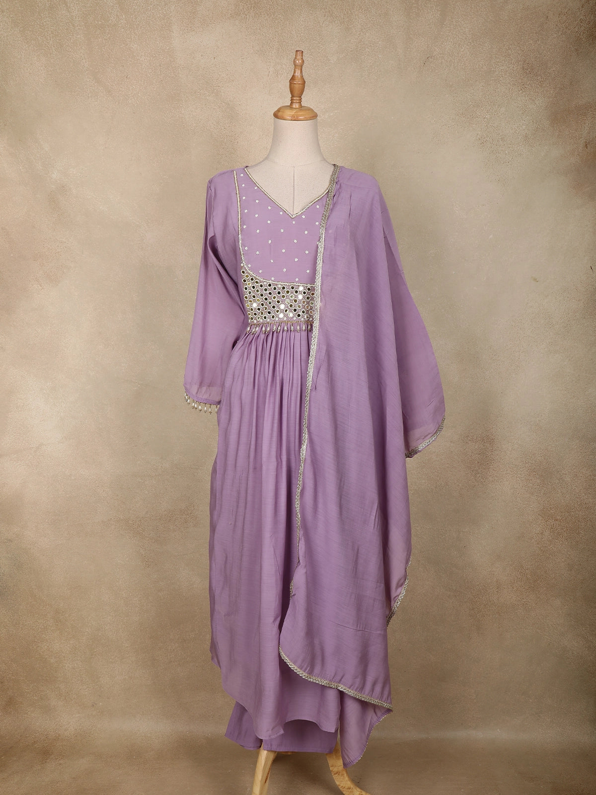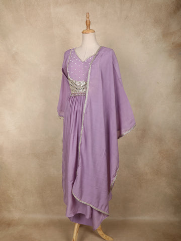 Lavender Mirror Work Embroidered Cotton Salwar Suit with Dupatta