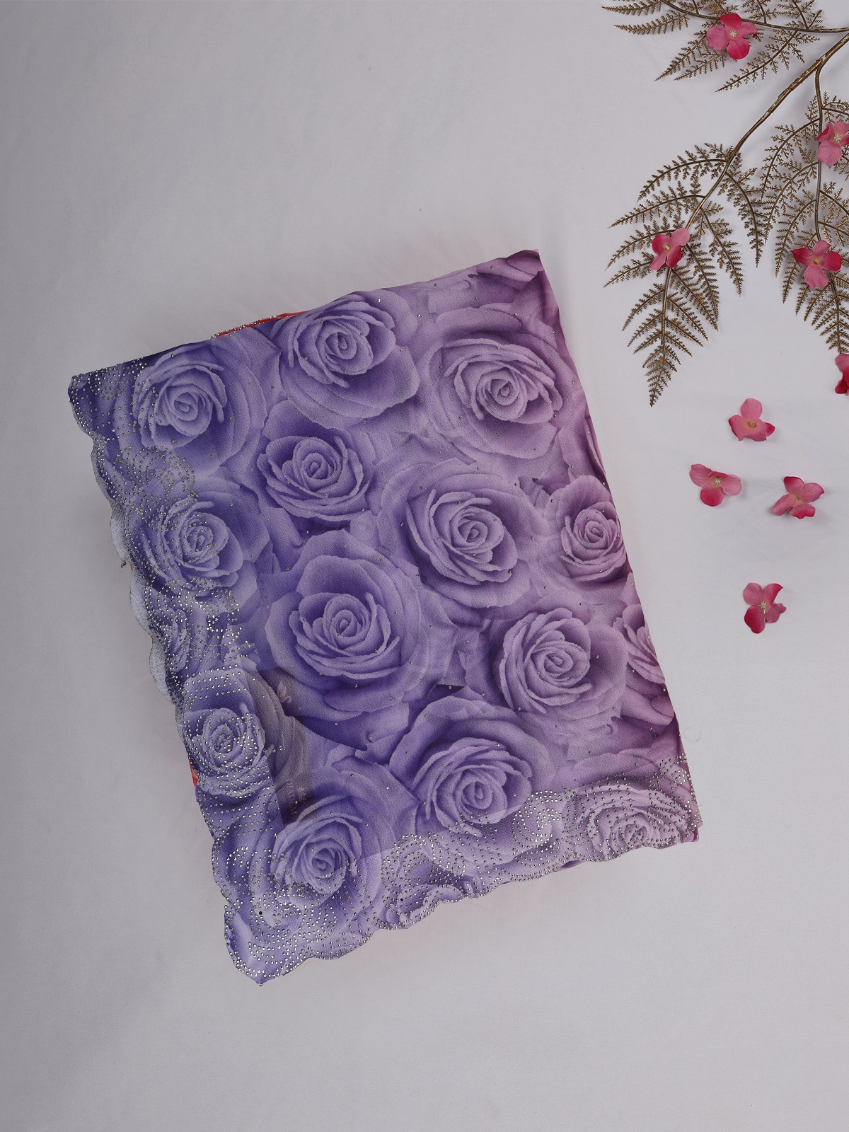 Step into soft, dreamy elegance with this exquisite Lavender Purple Floral Printed Chiffon Saree, beautifully designed to capture the charm of blooming roses in graceful pastel tones. The saree features an artistic arrangement of lavender rose motifs, creating a soothing and feminine visual appeal that enhances the overall sophistication of the drape.
