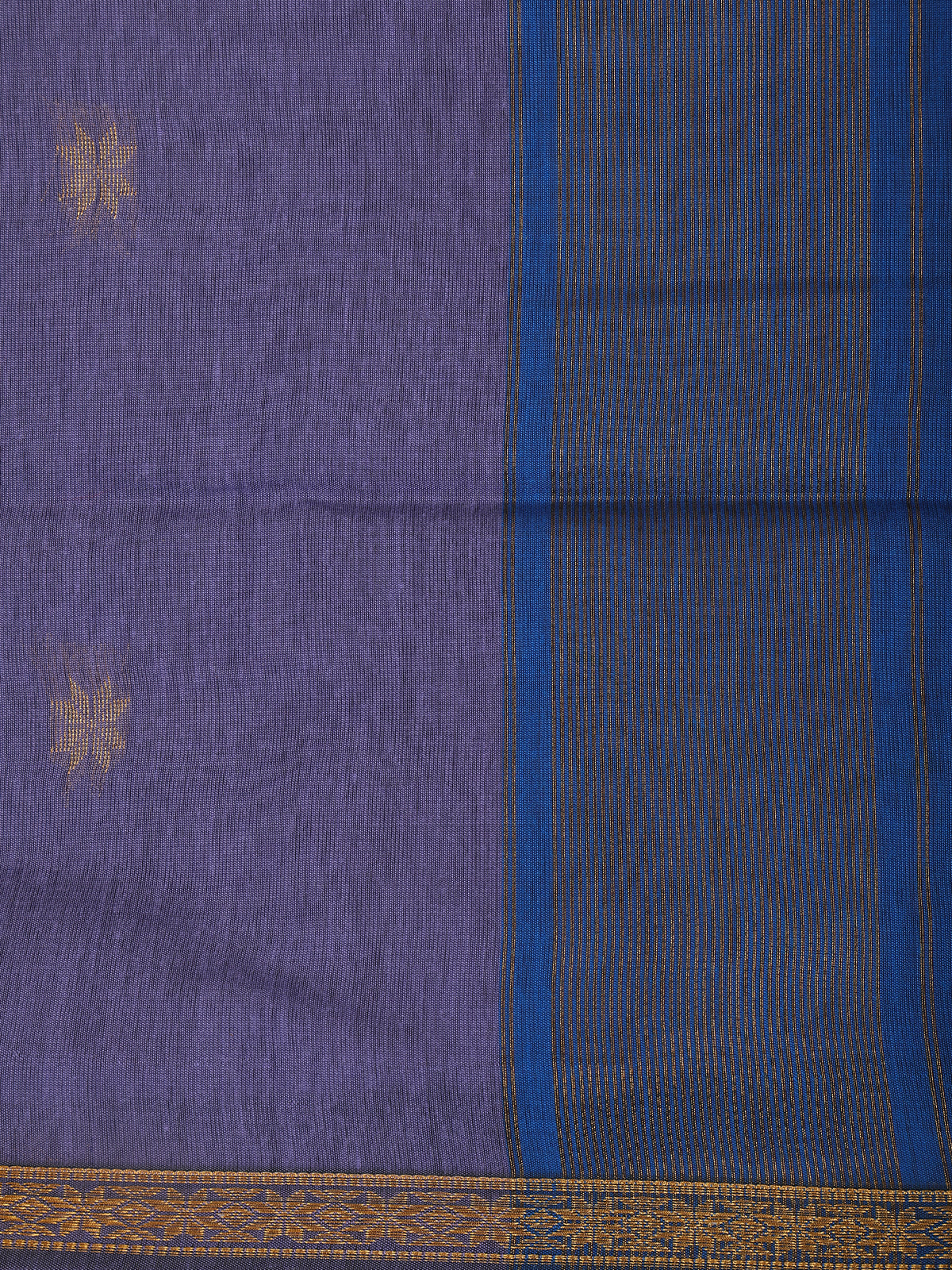 Lavender Purple Butta Design Kalyani Cotton Saree with Zari Border