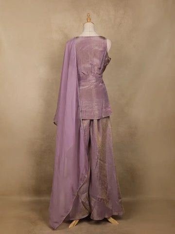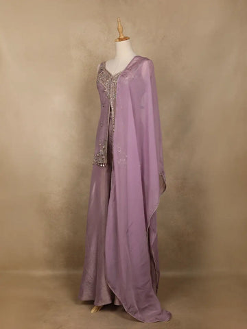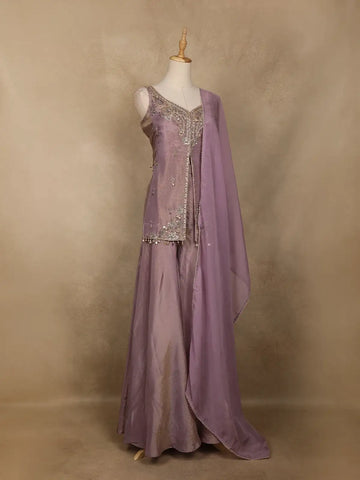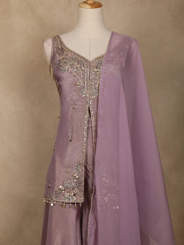 Lavender Sequin Embroidery Design Silk Palazzo Suit