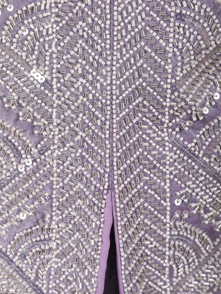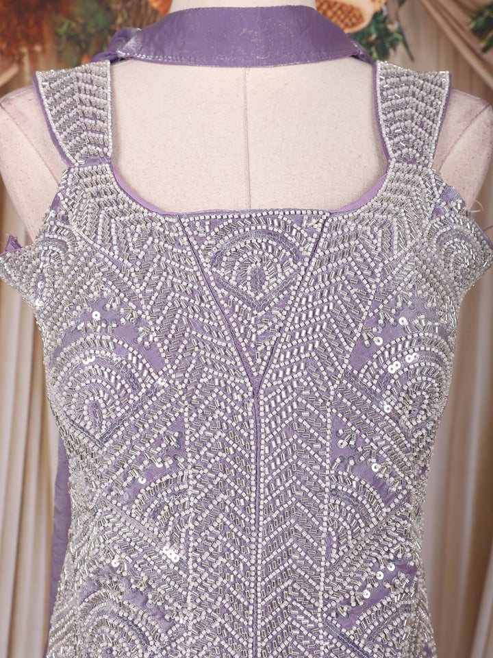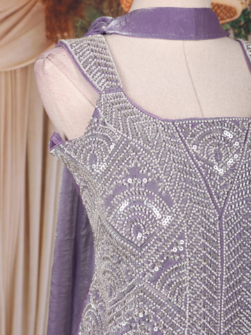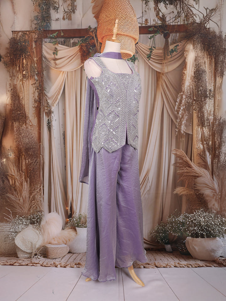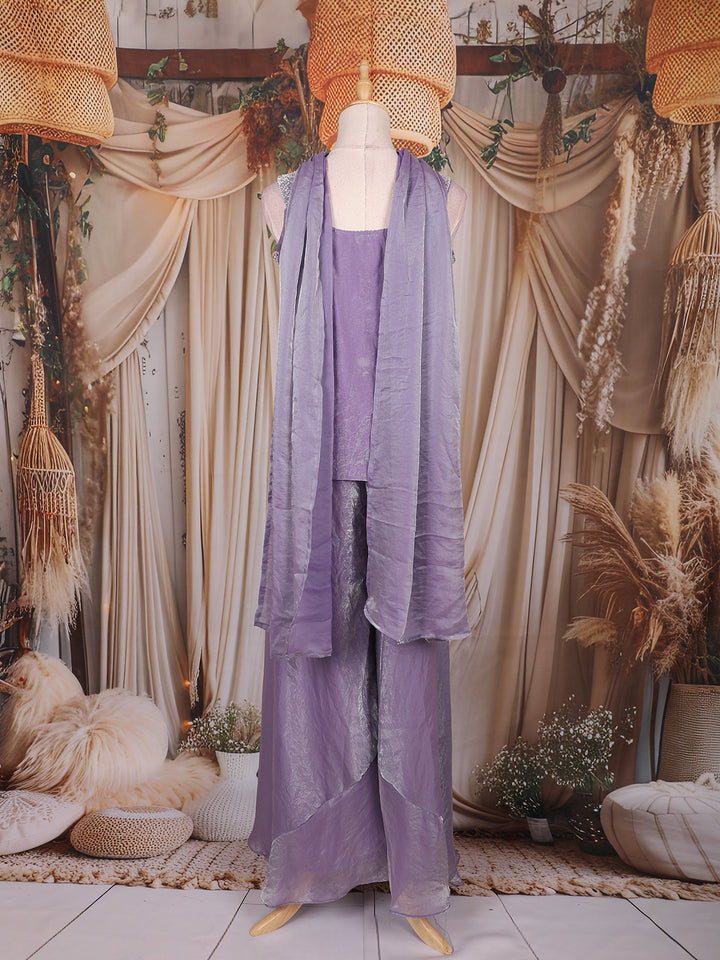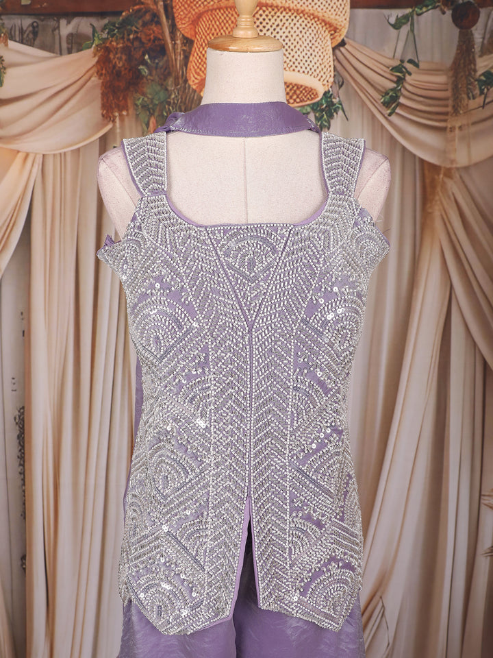 Lavender Sequins Design Organza Palazzo Suit with Choker Dupatta