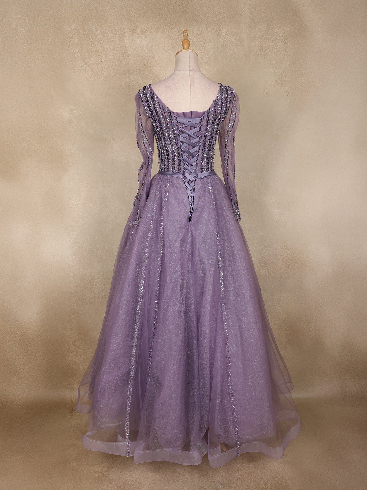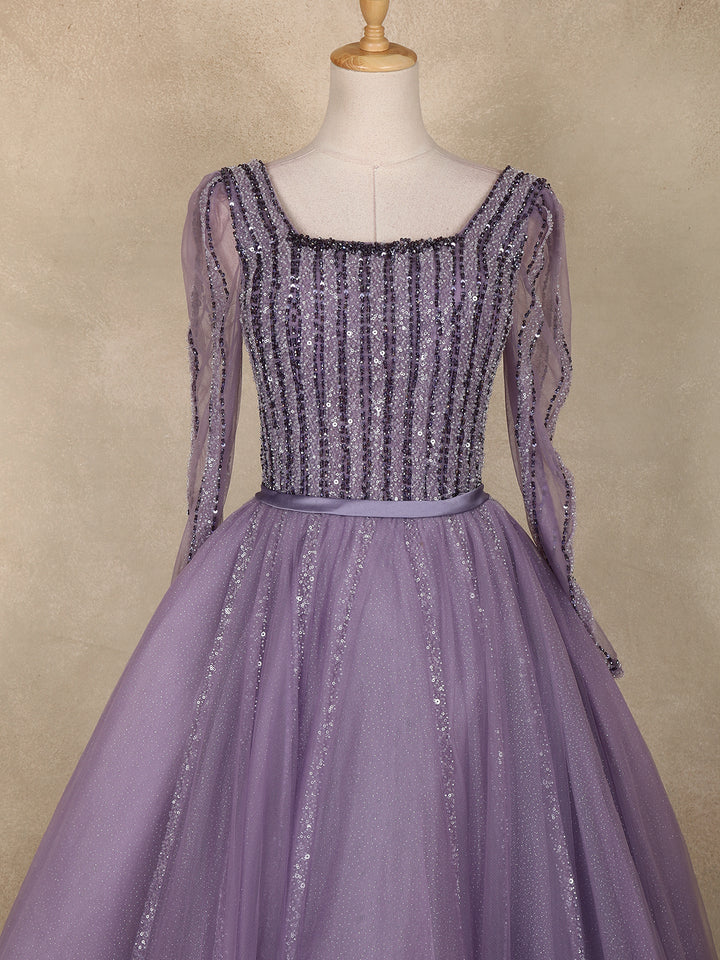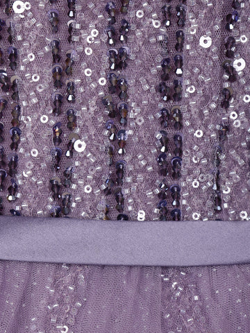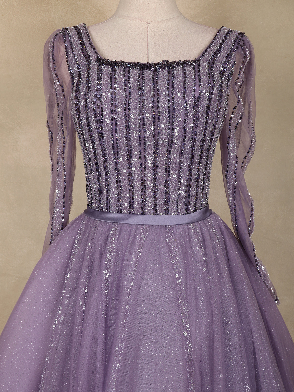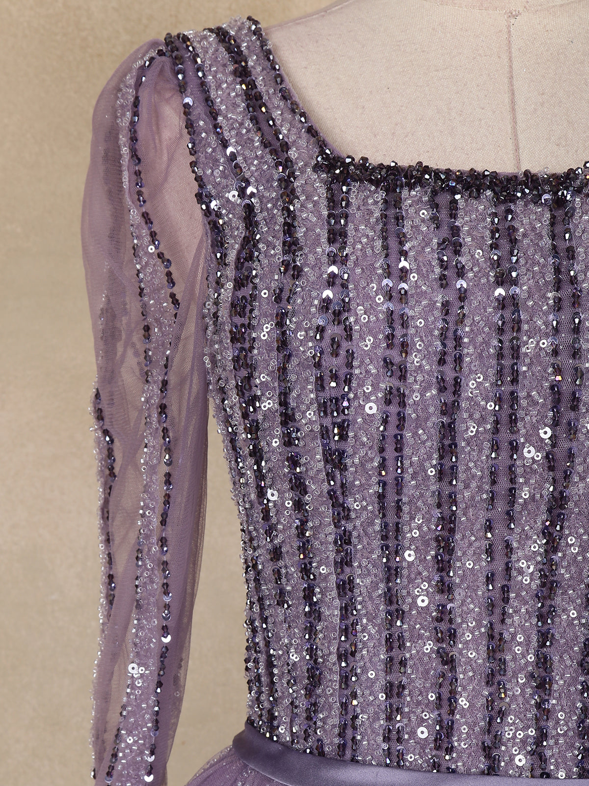 Lavender Sequins Embellished Design Net Ball Gown with Full Sleeves