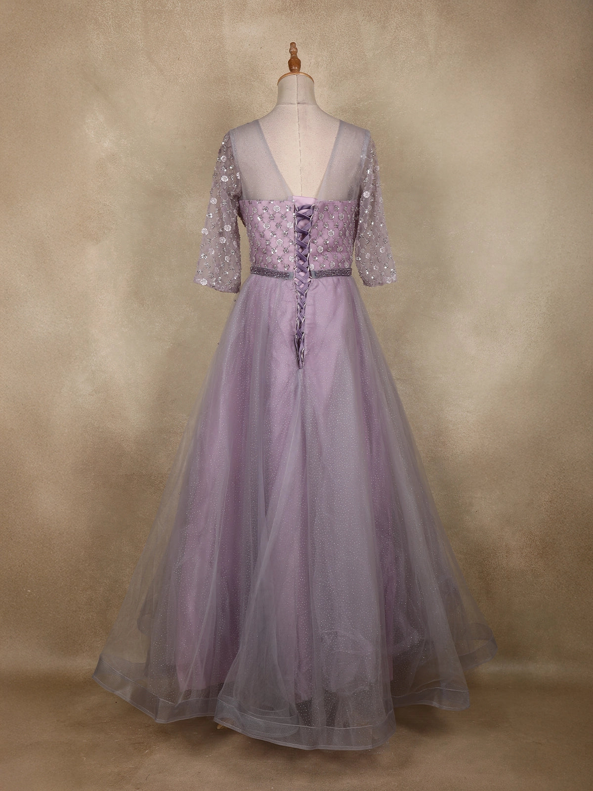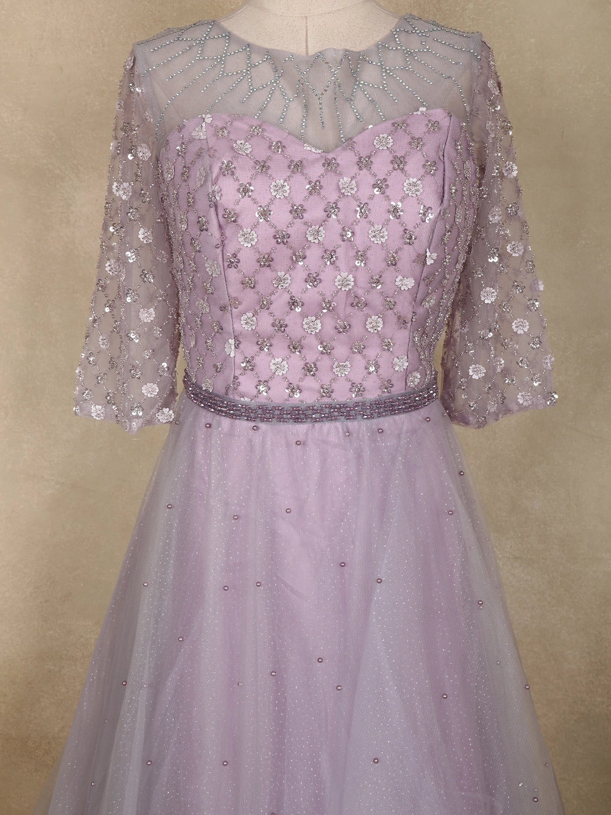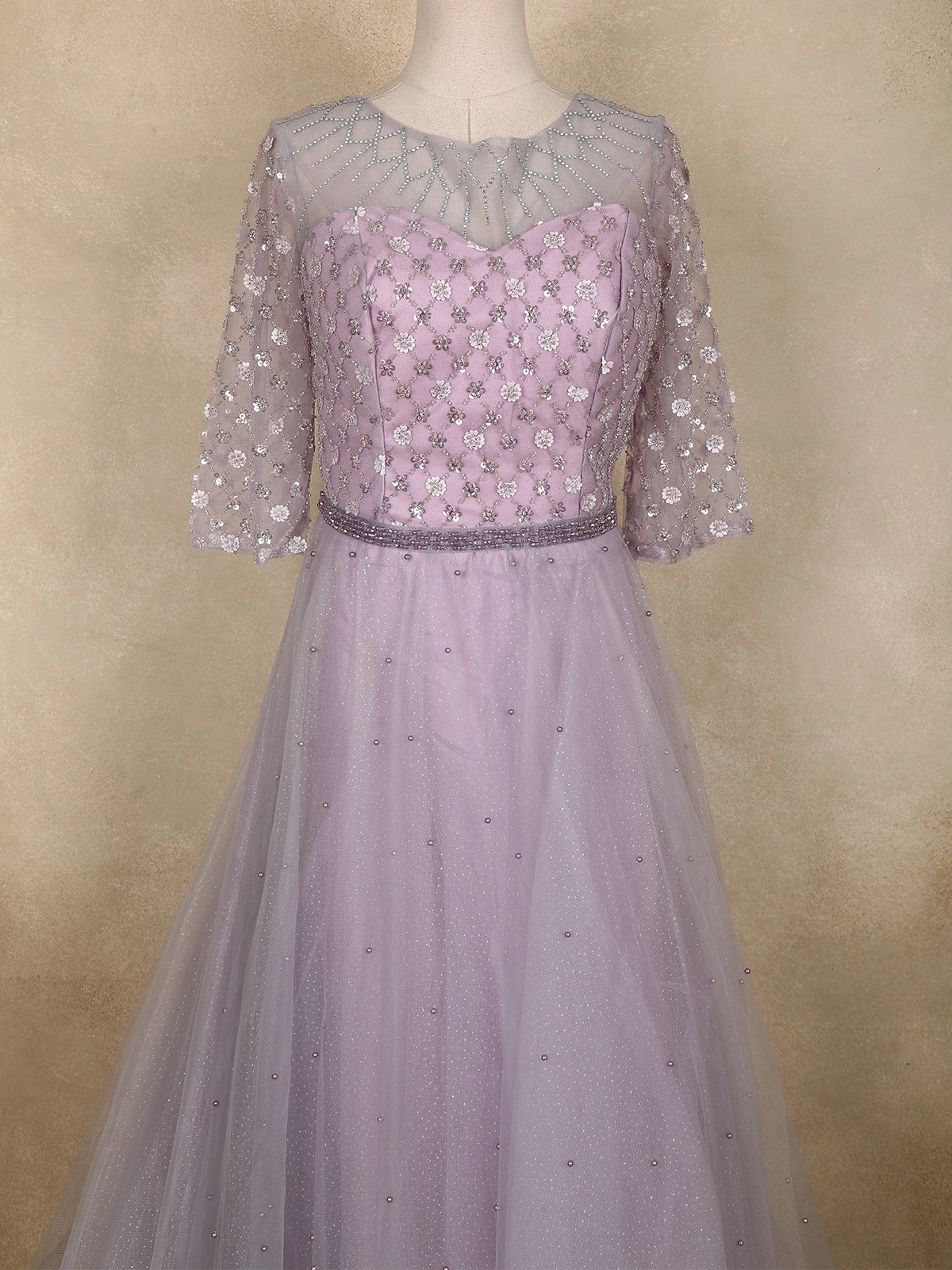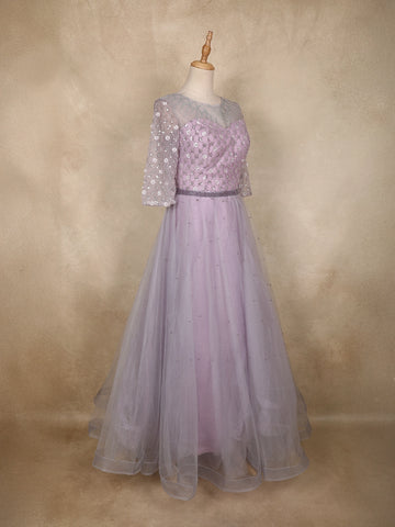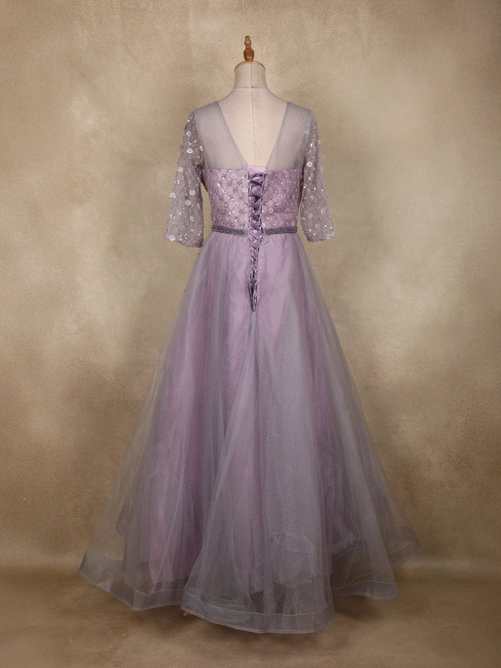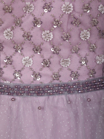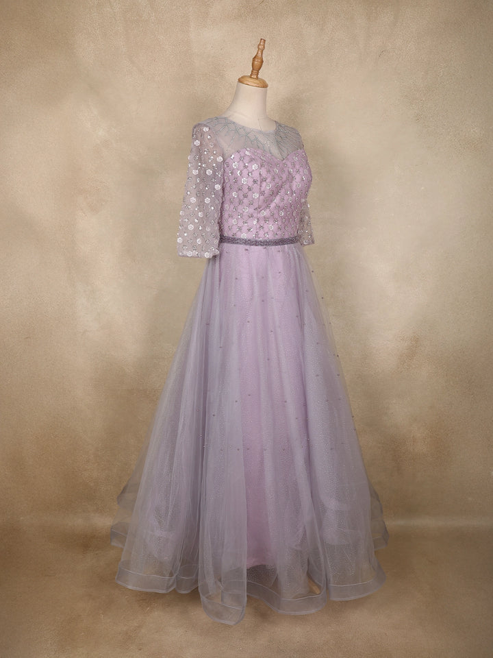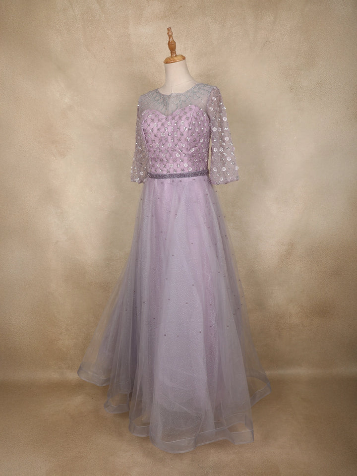 Lavender Sequins Embellished Design Net Gown