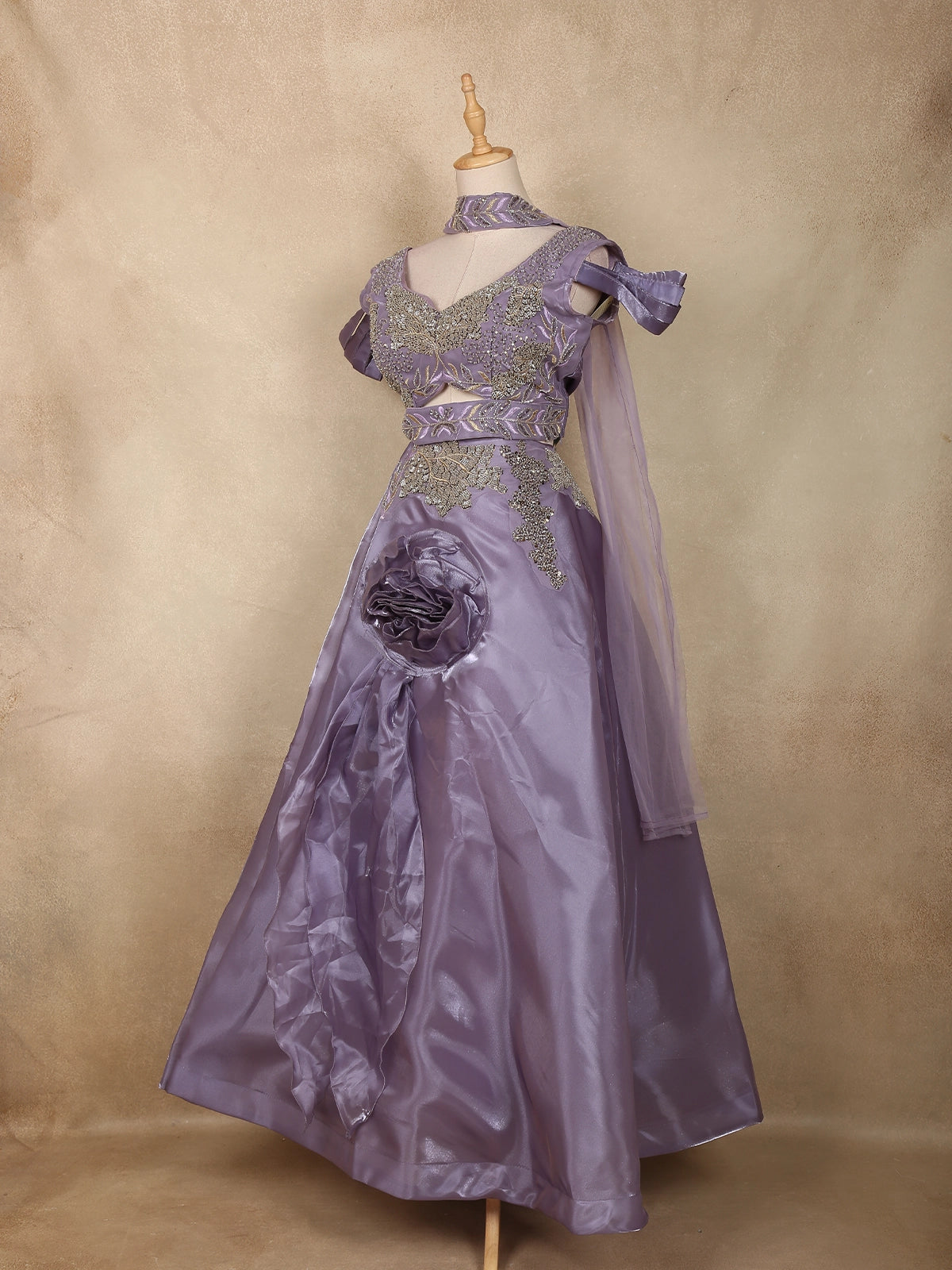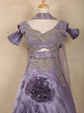 Lavender Sequins Embroidered Design Organza Bridesmaid Lehenga