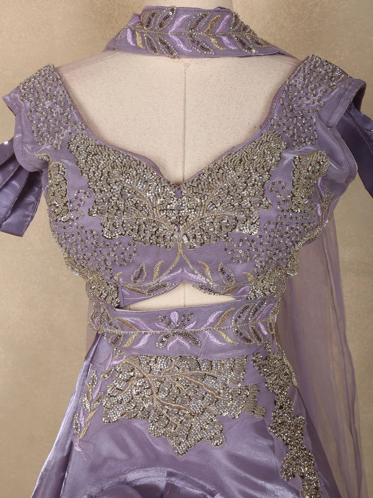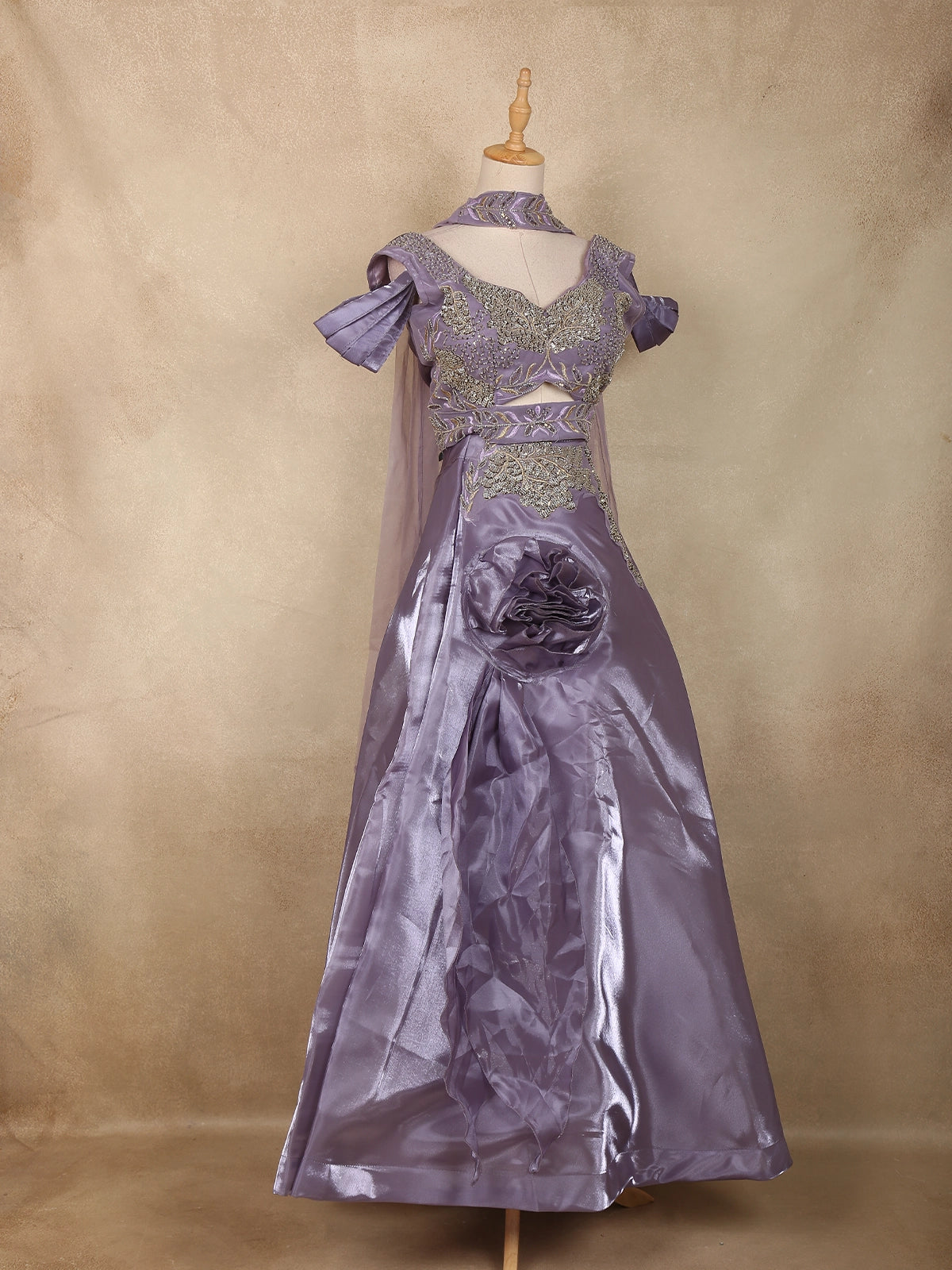 Completing the look is a net dupatta with a subtle shimmer border, offering a touch of airy romance. Ideal for weddings, receptions, or engagement celebrations, this lavender masterpiece captures the beauty of understated glamour — perfect for bridesmaids who wish to glow with elegance and grace.