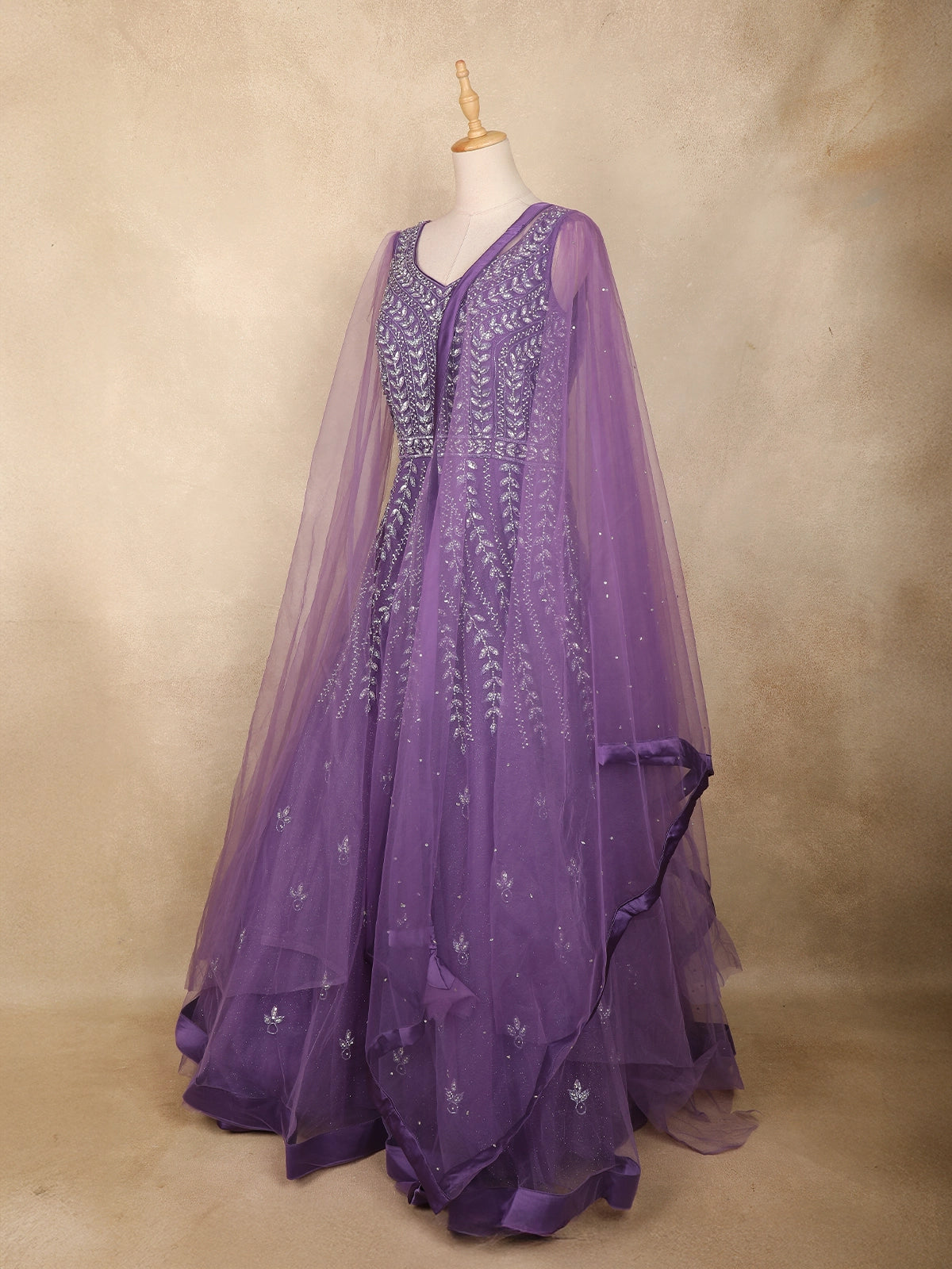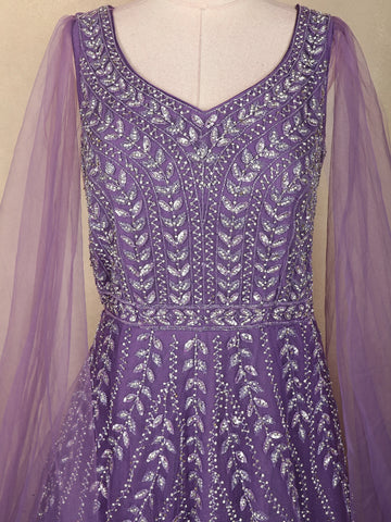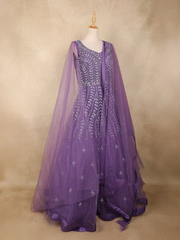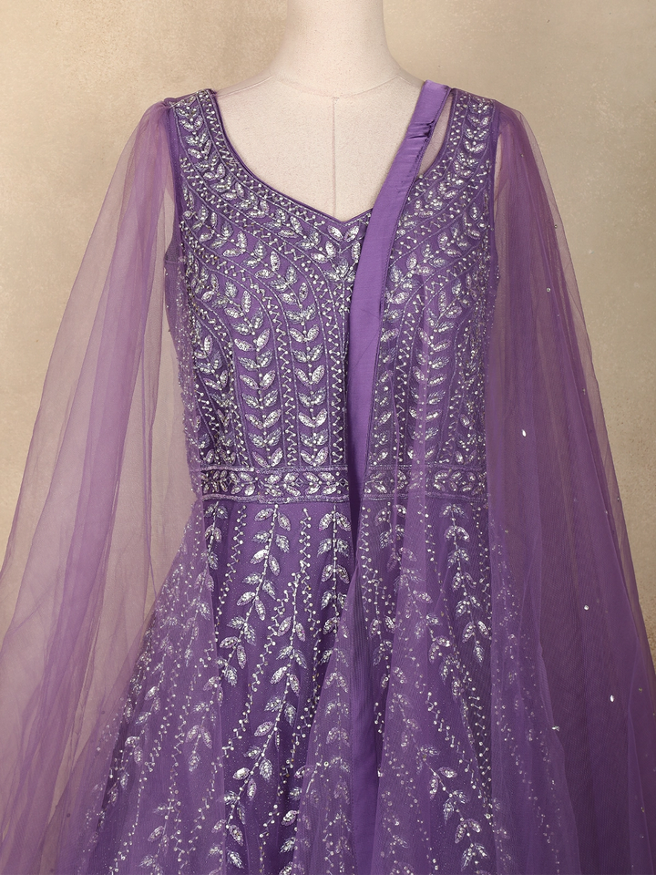 Lavender Sequins Embroidered Net Gown with Dupatta