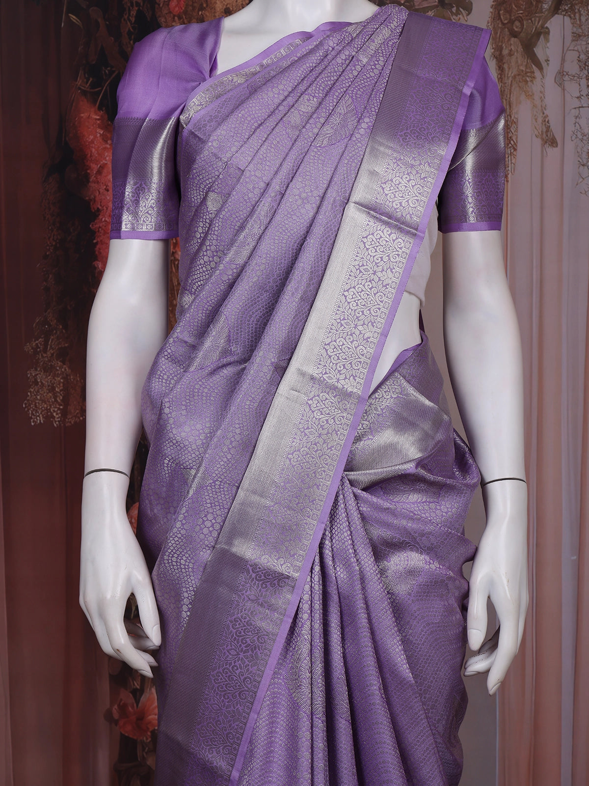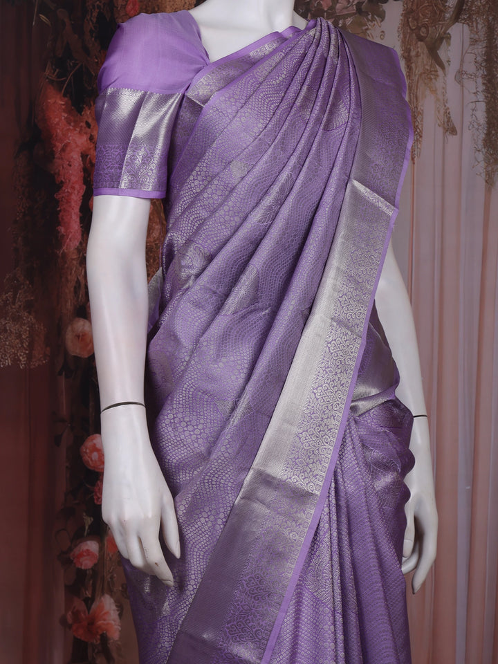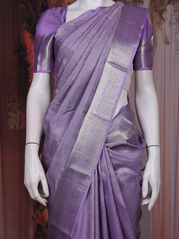 Lavender Silver Zari Woven Kanchipuram Tissue Silk Saree