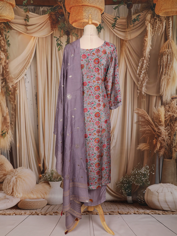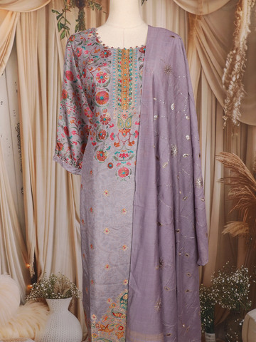 Lavender Thread Embroidered Design Crepe Straight Cut Salwar Suit