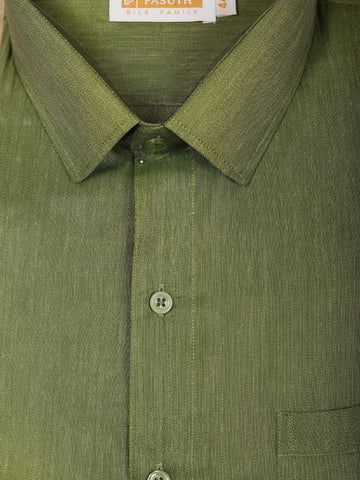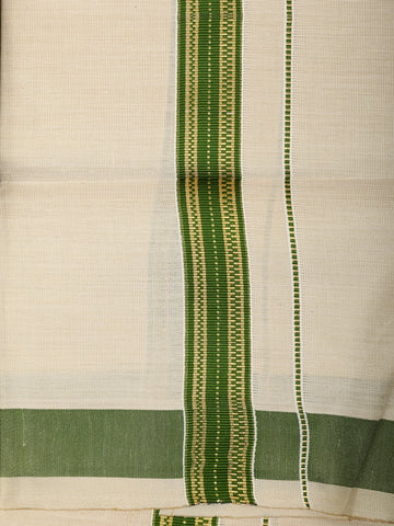 Leaf Green Solid Woven Design Shirt with Cream Dhoti and Teal Gold Zari Border Set
