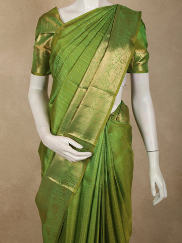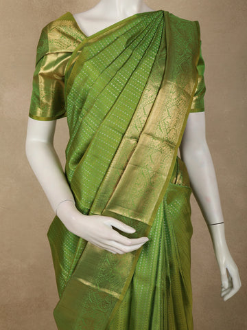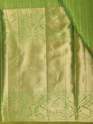 Leaf Green Striped Zari Woven Design Pure Kanchipuram Silk Saree with Zari Border