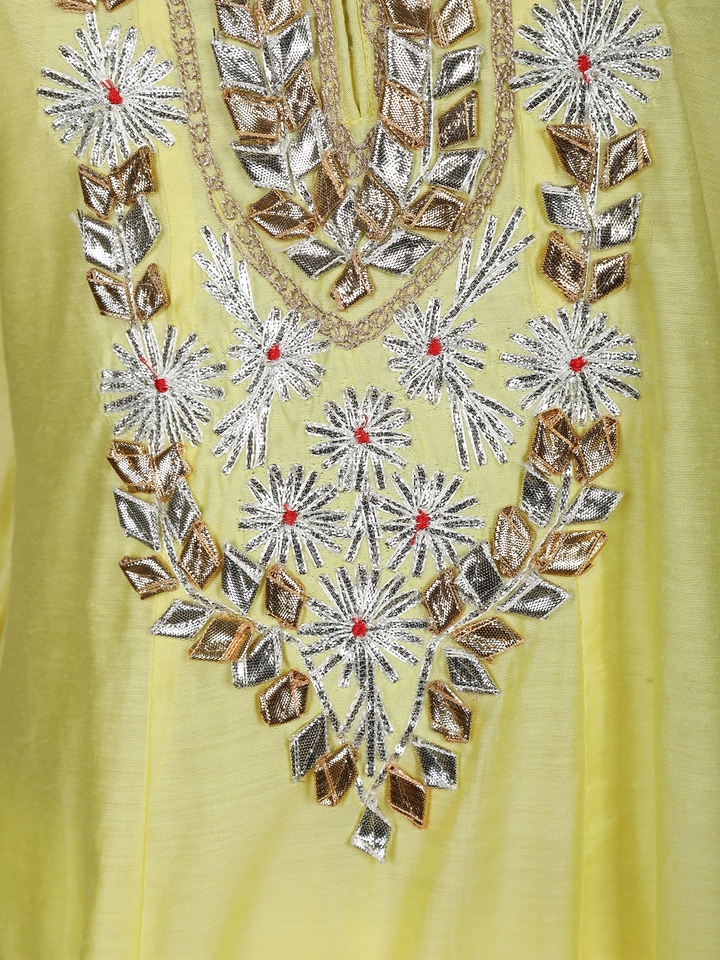 Lemon Yellow Floral Embroidered Cotton Salwar Suit with Dupatta