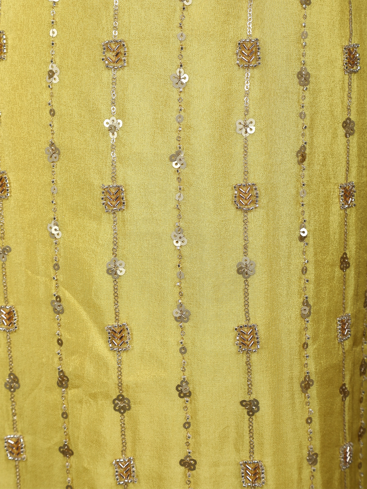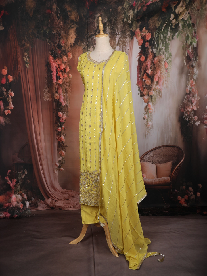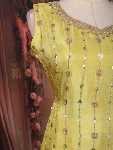 Lemon Yellow Sequins Embroidered Tissue Silk Suit with Dupatta