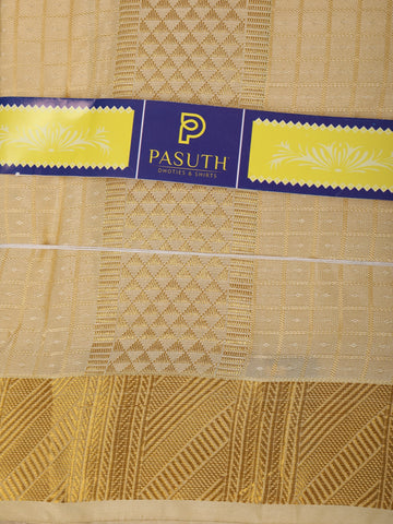 Light Beige Geometric Woven Design Unstitched Shirt with Matching Dhoti Set with Zari Border