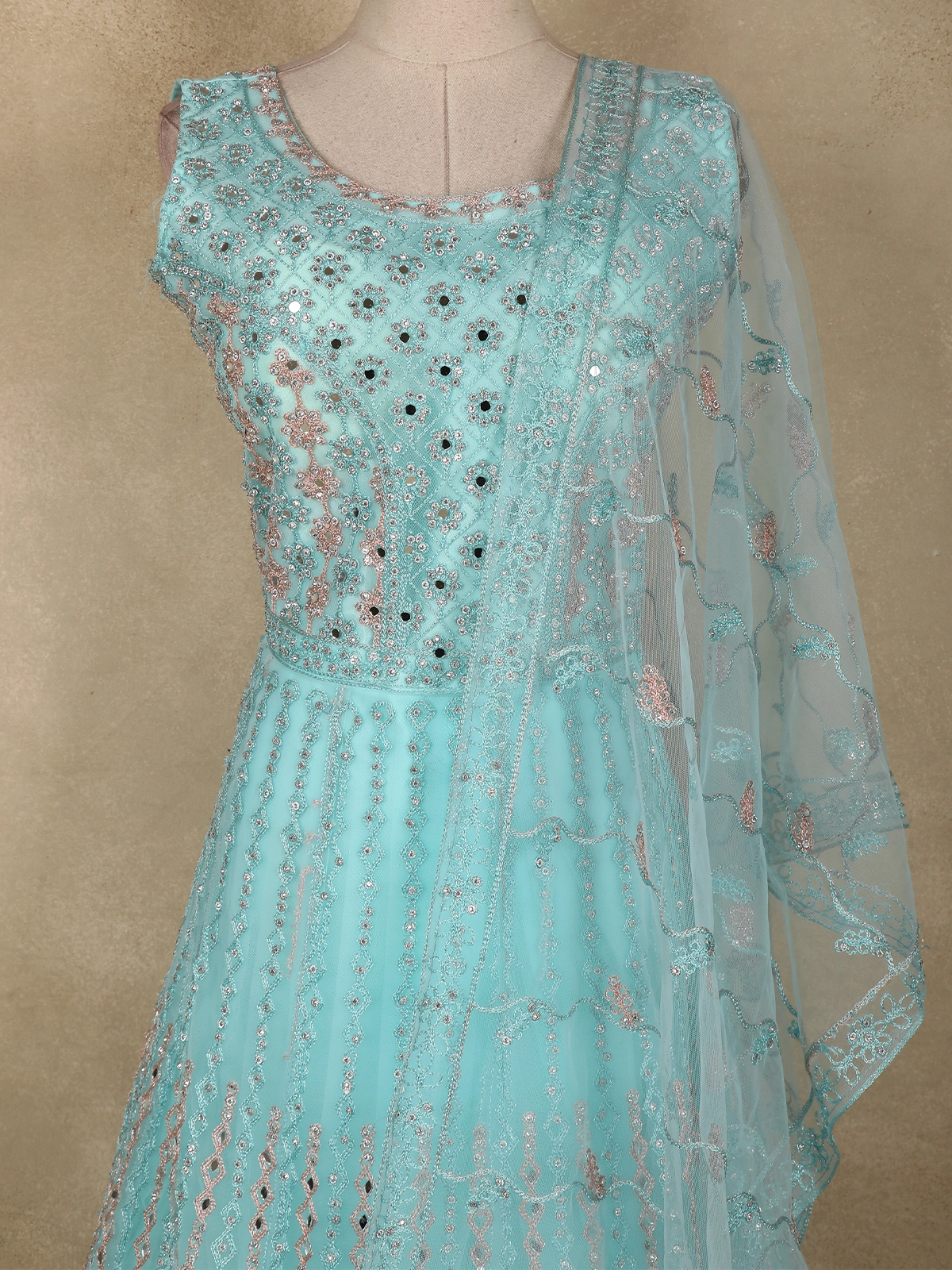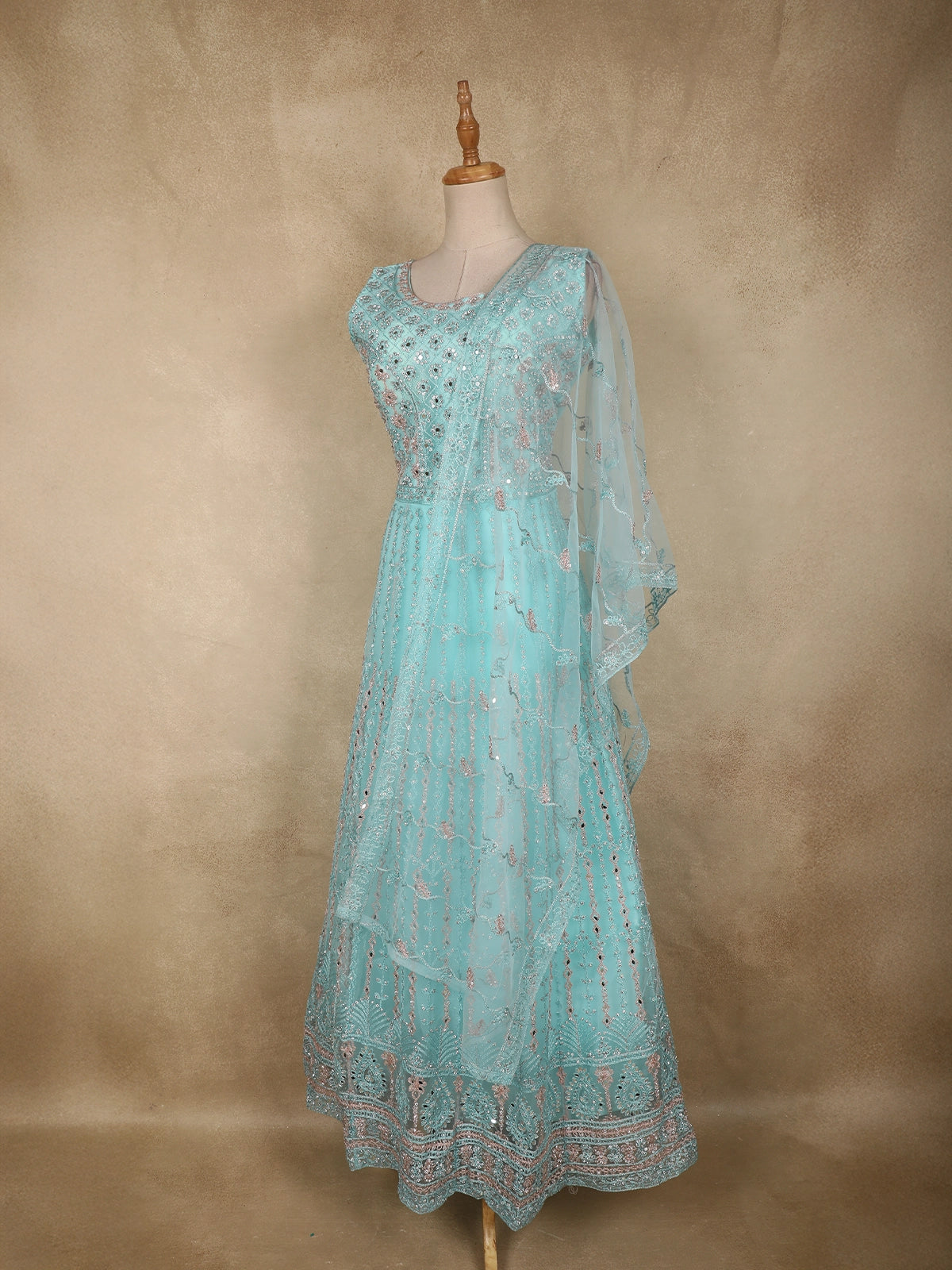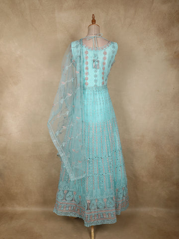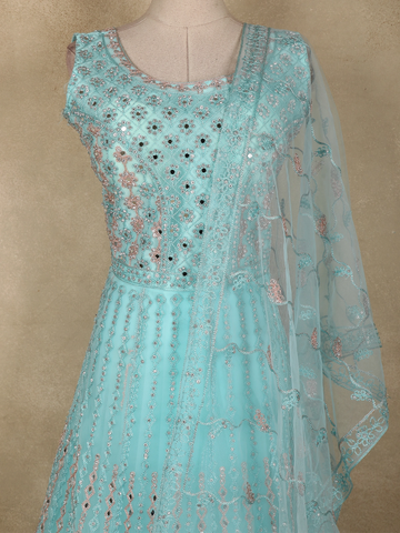 Ideal for bridesmaid wear, receptions, engagement ceremonies, and festive celebrations, this light blue gown is perfect for those who love understated elegance with intricate detailing. A timeless choice that effortlessly elevates your occasion wear wardrobe.