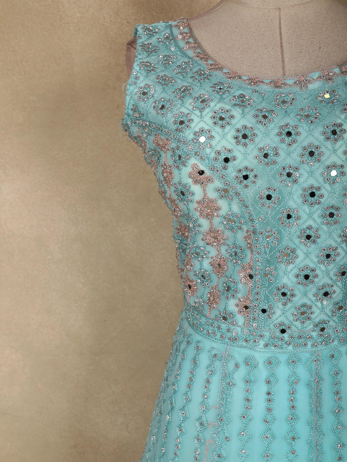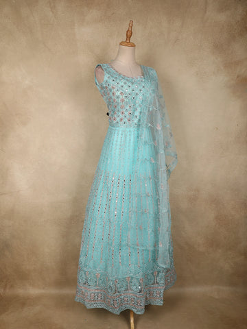 Light Blue Beads and Sequins Embroidered Design Net Bridesmaid Gown