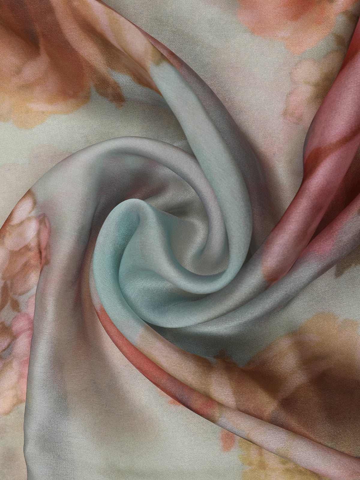 Graceful, airy, and effortlessly stylish—this Light Blue Tissue Organza Saree is perfect for occasions where you want to stand out with subtle class. The saree features a soft watercolor-style floral print in shades of pink, peach, and ivory that enhances the soothing light blue base beautifully.