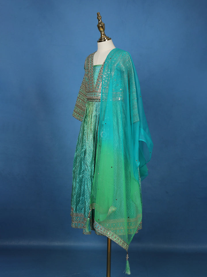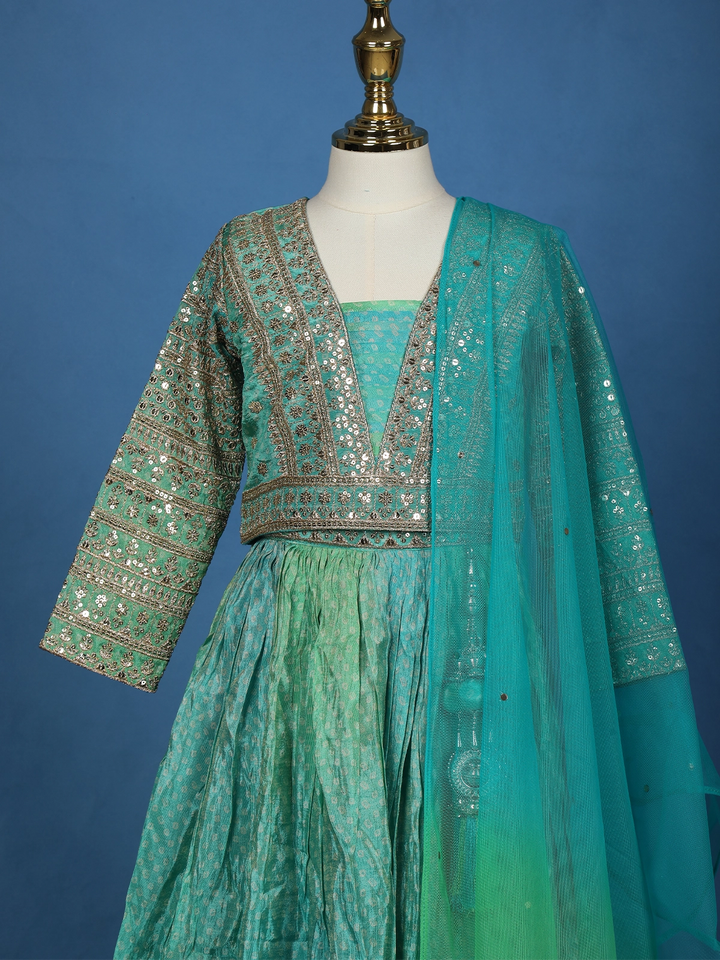 Light Blue Floral Sequins Embroidered Silk Kids Lehenga With Dupatta