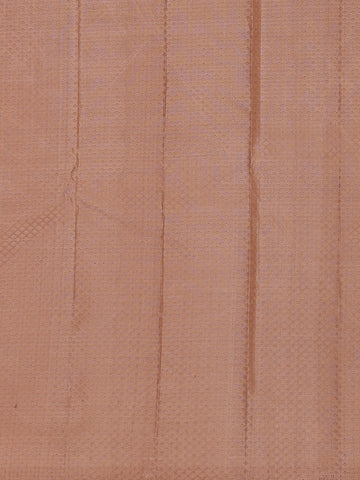 The saree comes with a contrast peach blouse featuring a subtle self-woven texture, adding a warm, balanced tone that enhances the silk’s radiance. The zari-woven border and contrasting blue pallu lend this ensemble a refined grandeur, making it ideal for weddings, festive occasions, and special cultural events.