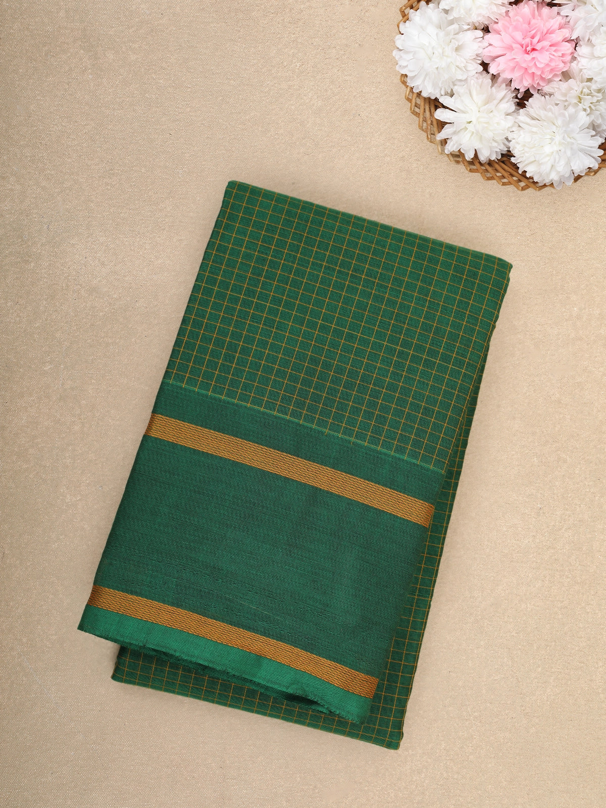 Light Green Checked Design Cotton Saree with Green Border